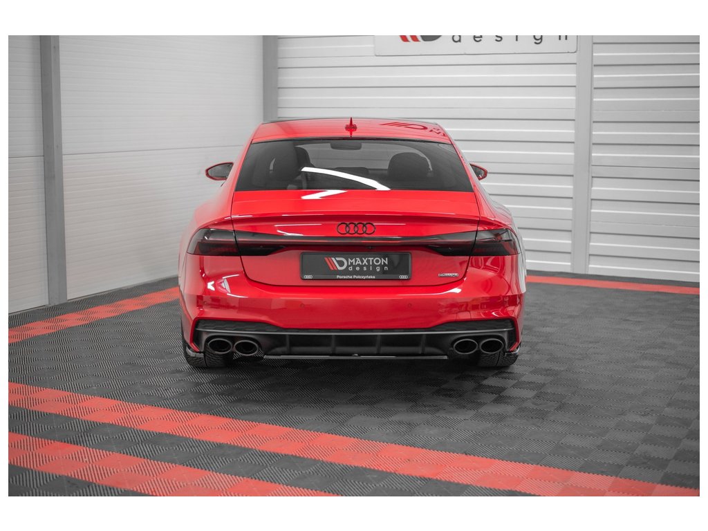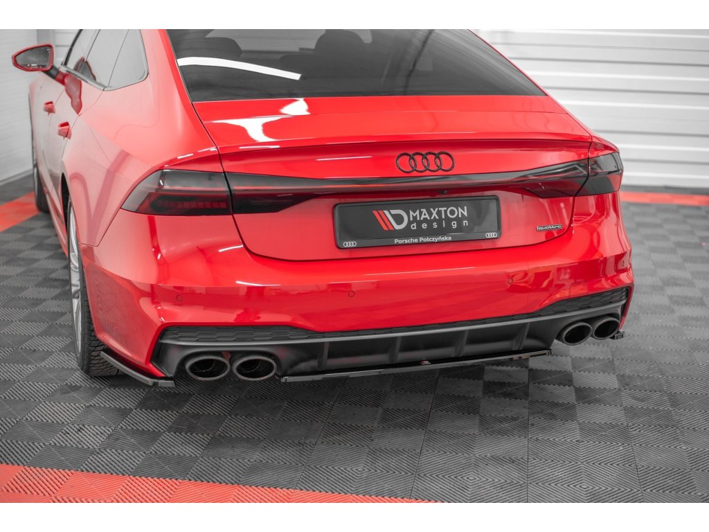 Maxton Design středový spoiler zadního nárazníku pro vozidlo Audi A7 C8 . Povrchová úprava spoileru černý lesklý plast ABS.