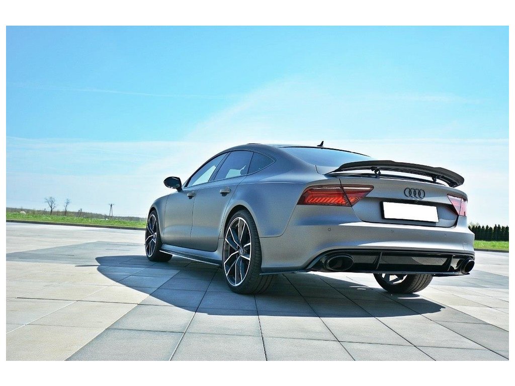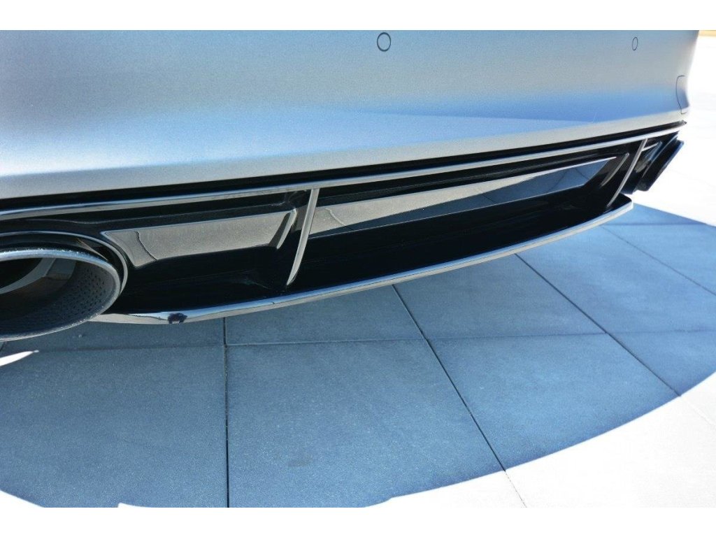 Maxton Design středový spoiler zadního nárazníku pro vozidlo Audi RS7 C7 FL . Povrchová úprava spoileru černý lesklý plast ABS.