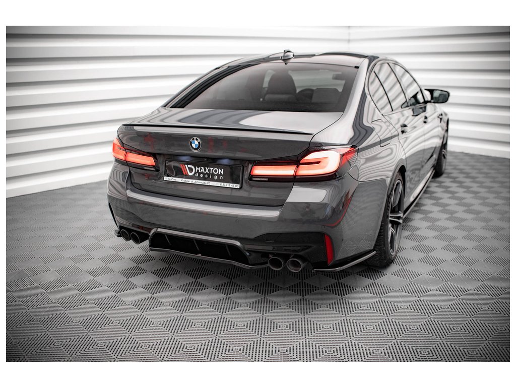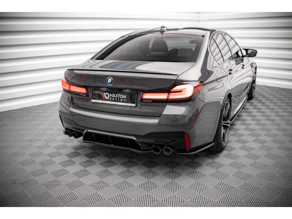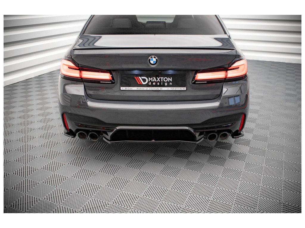 Maxton Design středový spoiler zadního nárazníku pro vozidlo BMW M5 F90, F90 Facelift . Povrchová úprava spoileru černý lesklý plast ABS.