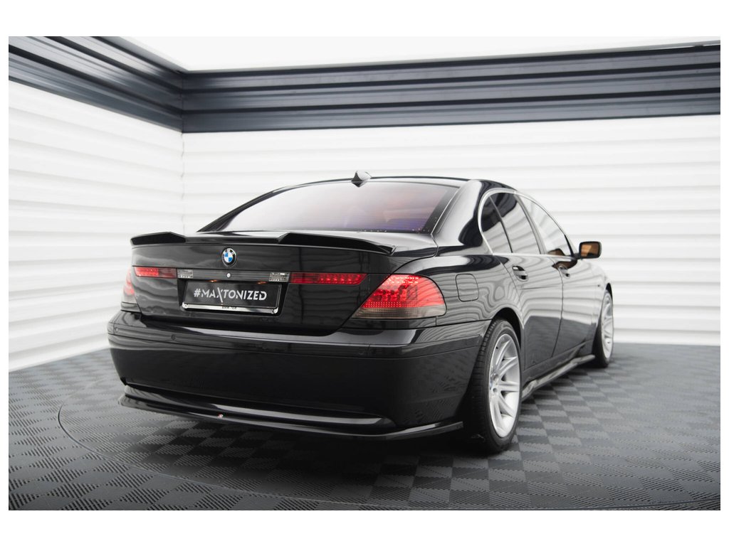 Maxton Design středový spoiler zadního nárazníku pro vozidlo BMW řada 7 E65 . Povrchová úprava spoileru černý lesklý plast ABS.