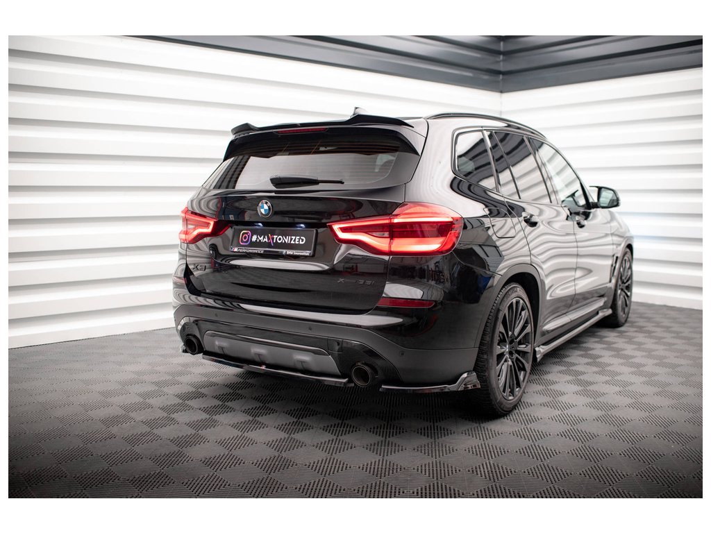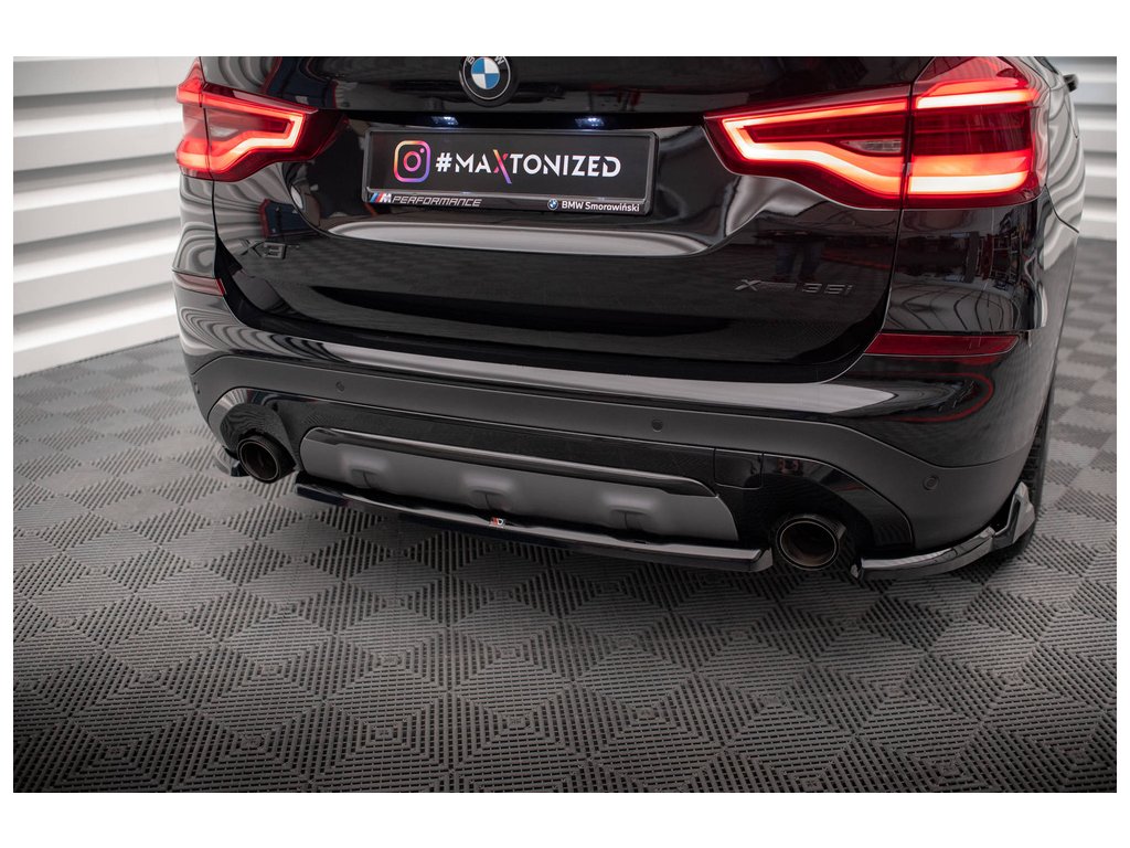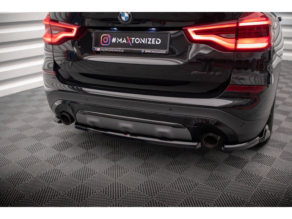 Maxton Design středový spoiler zadního nárazníku pro vozidlo BMW X3 G01 . Povrchová úprava spoileru černý lesklý plast ABS.