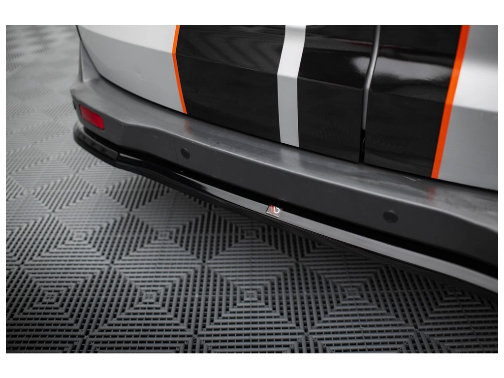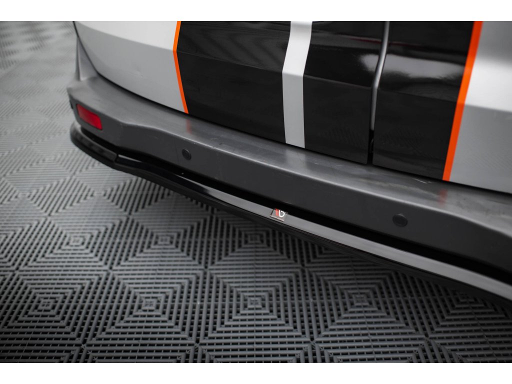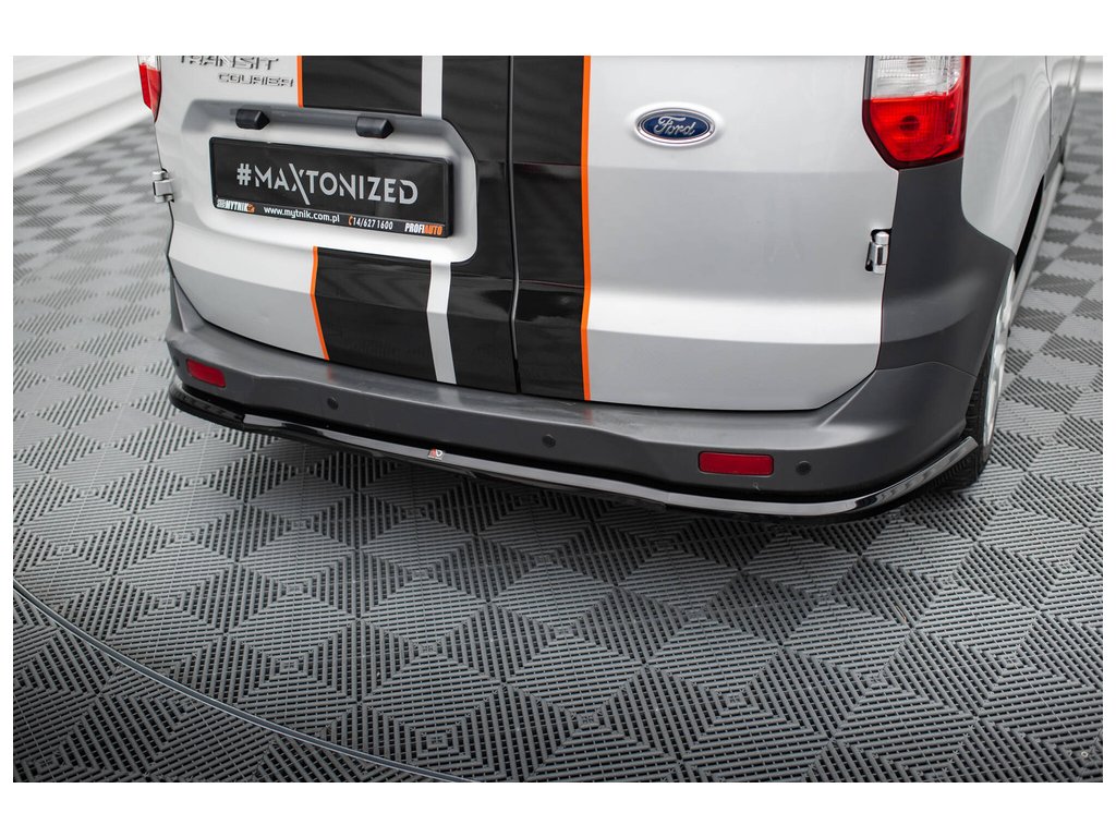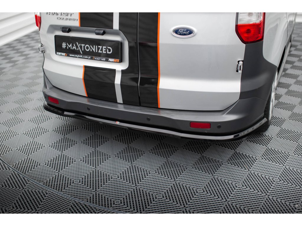 Maxton Design středový spoiler zadního nárazníku pro vozidlo Ford Transit Courier Mk1 . Povrchová úprava spoileru černý lesklý plast ABS.