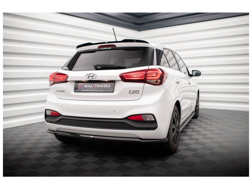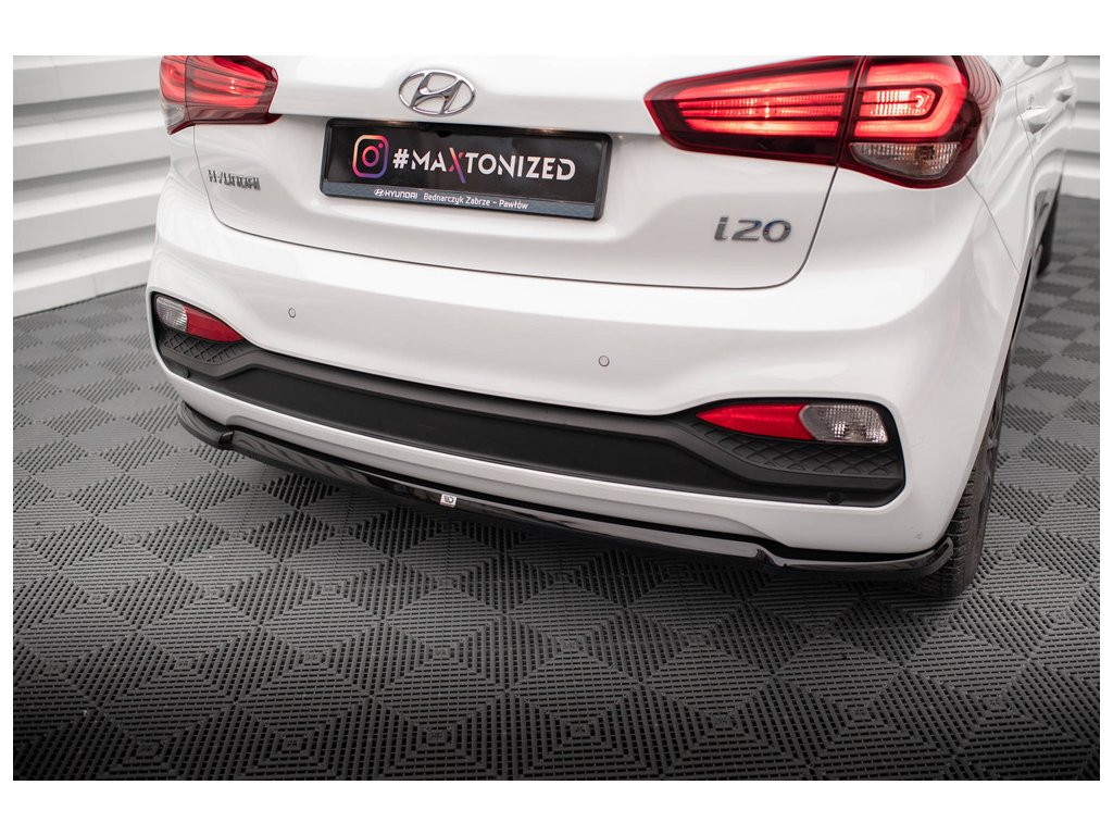 Maxton Design středový spoiler zadního nárazníku pro vozidlo Hyundai i20 Mk2 Facelift . Povrchová úprava spoileru černý lesklý plast ABS.