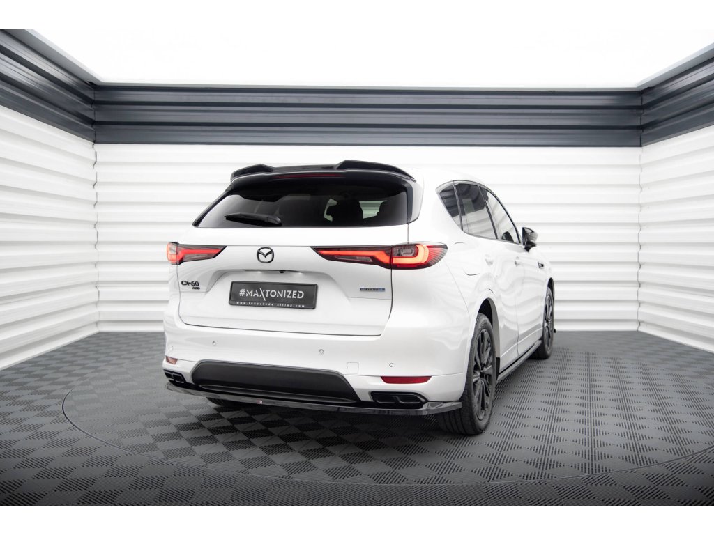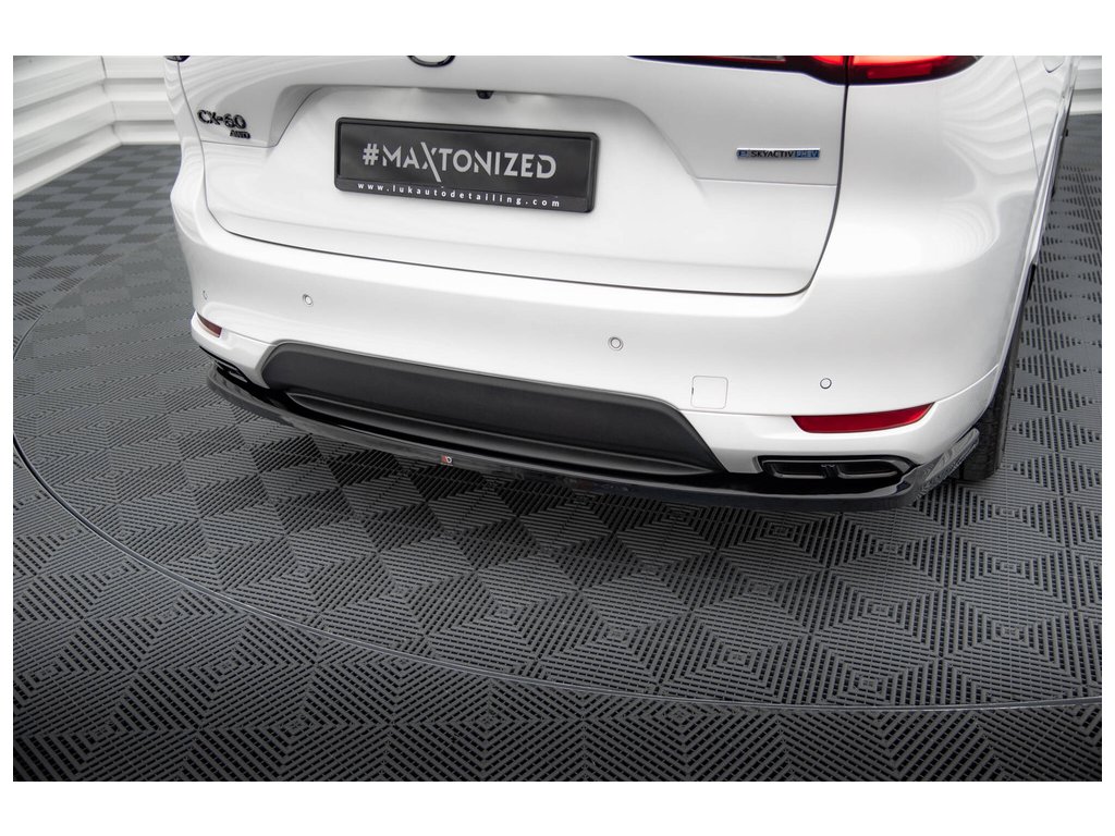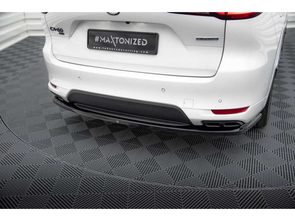 Maxton Design středový spoiler zadního nárazníku pro vozidlo Mazda CX-60 Mk1 . Povrchová úprava spoileru černý lesklý plast ABS.