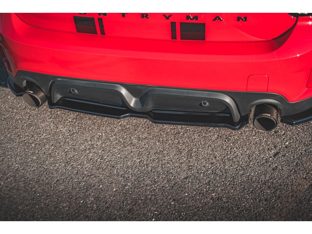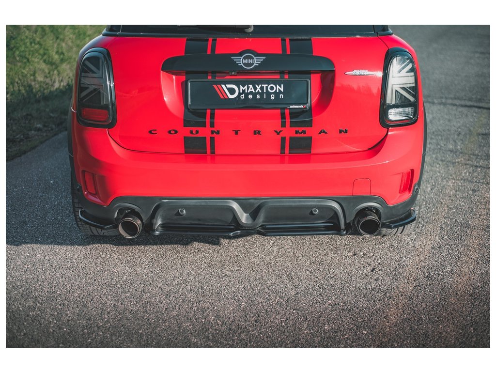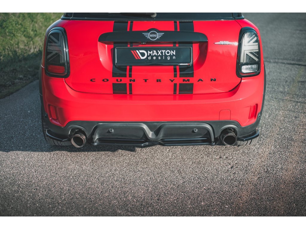 Maxton Design středový spoiler zadního nárazníku pro vozidlo Mini Countryman F60 . Povrchová úprava spoileru černý lesklý plast ABS.