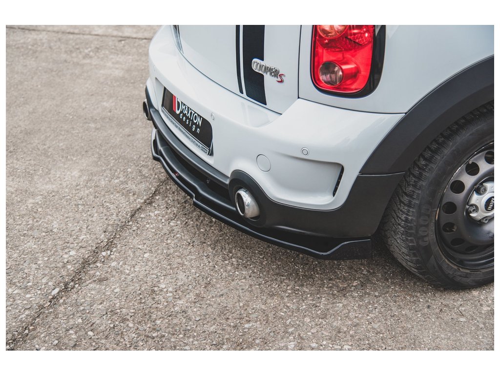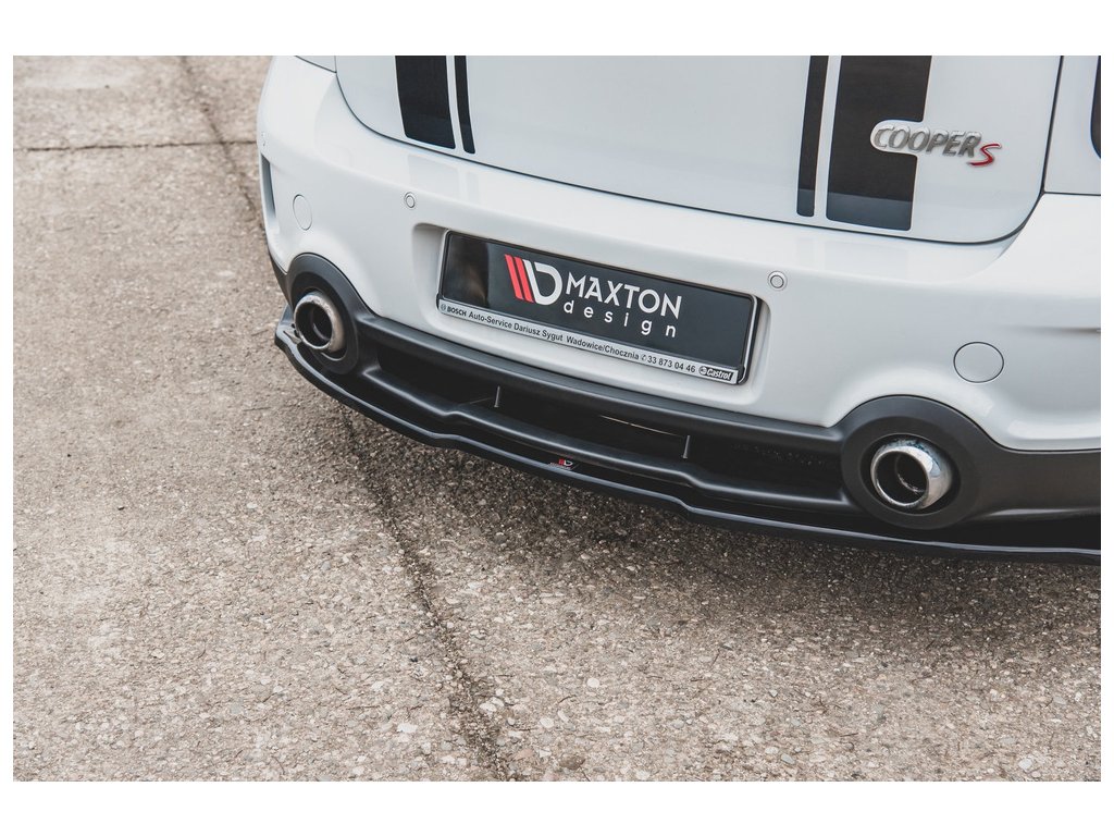 Maxton Design středový spoiler zadního nárazníku pro vozidlo Mini Countryman R60 . Povrchová úprava spoileru černý lesklý plast ABS.