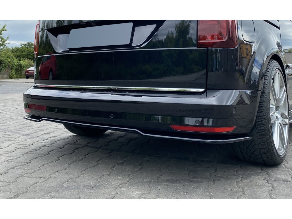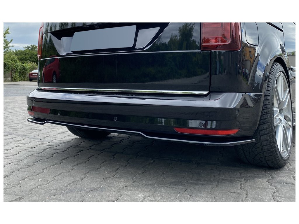 Maxton Design středový spoiler zadního nárazníku pro vozidlo Volkswagen Caddy Mk 4 . Povrchová úprava spoileru černý lesklý plast ABS.