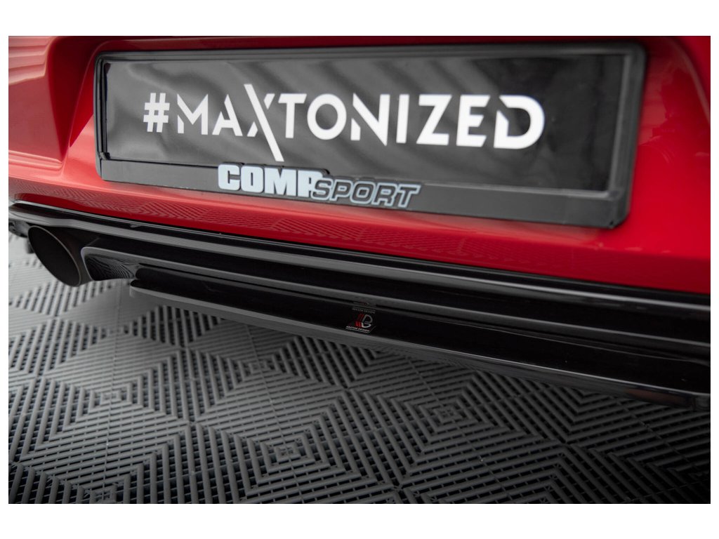 Maxton Design středový spoiler zadního nárazníku pro Volkswagen Golf GTI Mk7, červený lesklý plast ABS
