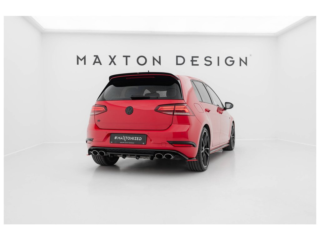 Maxton Design středový spoiler zadního nárazníku pro vozidlo Volkswagen Golf R Mk7 Facelift . Povrchová úprava spoileru černý lesklý plast ABS.