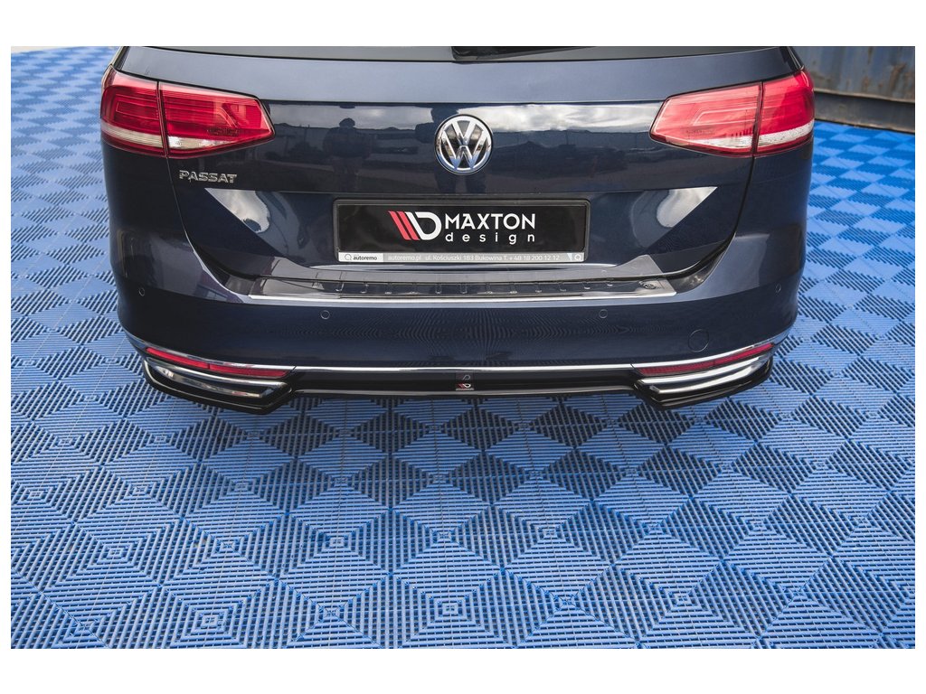 Maxton Design středový spoiler zadního nárazníku pro vozidlo Volkswagen Passat Mk8 (B8) . Povrchová úprava spoileru černý lesklý plast ABS.