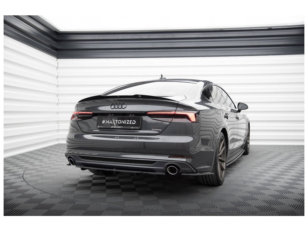 Maxton Design středový spoiler zadního nárazníku pro vozidlo Audi A5 F5 . Povrchová úprava spoileru černý lesklý plast ABS.