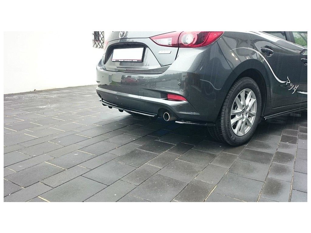 Maxton Design středový spoiler zadního nárazníku pro vozidlo Mazda 3 Mk3 Facelift . Povrchová úprava spoileru černý lesklý plast ABS.