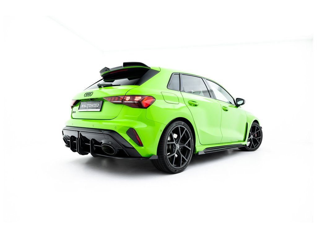 Maxton Design ''Street Pro'' difuzory pod boční prahy s křidélky pro vozidlo Audi RS3 8Y Facelift . Povrchová úprava spoileru plast ABS bez povrchové úpravy.