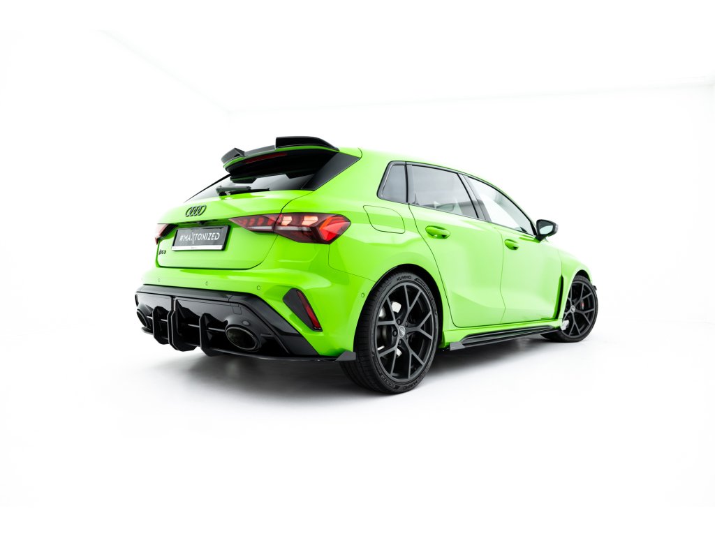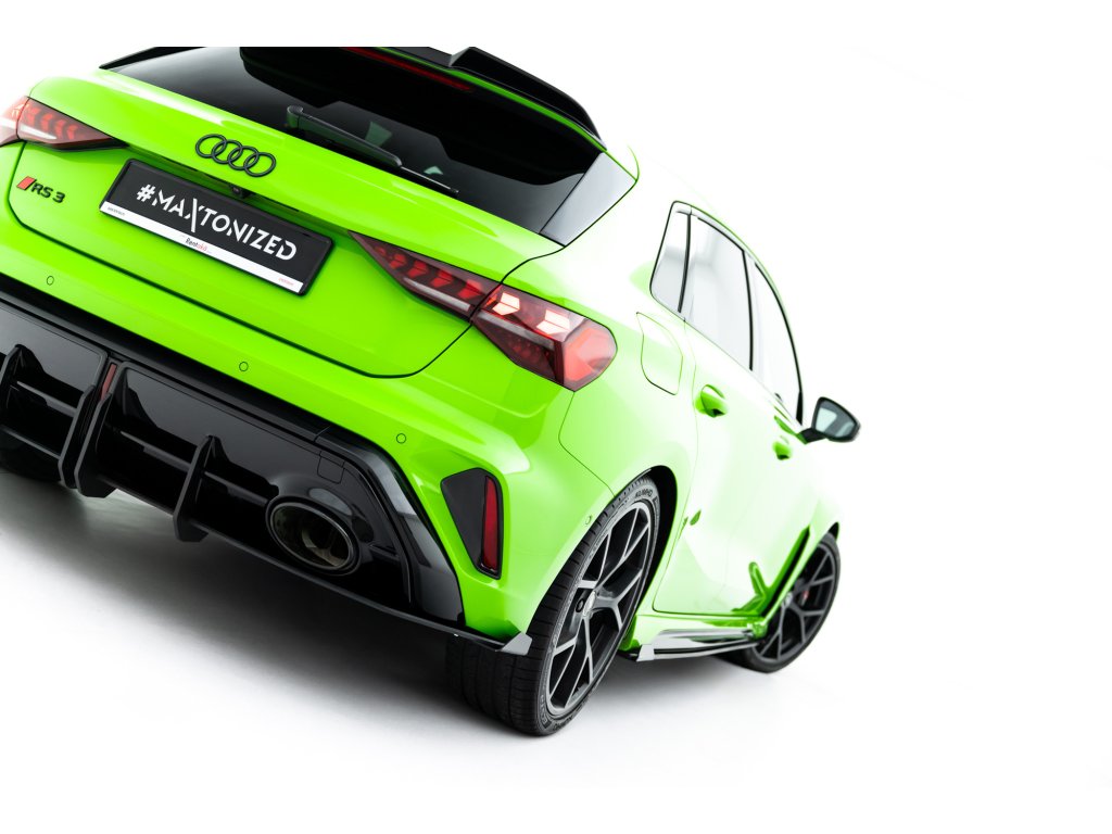 Maxton Design ''Street Pro'' difuzory pod boční prahy s křidélky pro vozidlo Audi RS3 8Y Facelift . Povrchová úprava spoileru plast ABS bez povrchové úpravy.