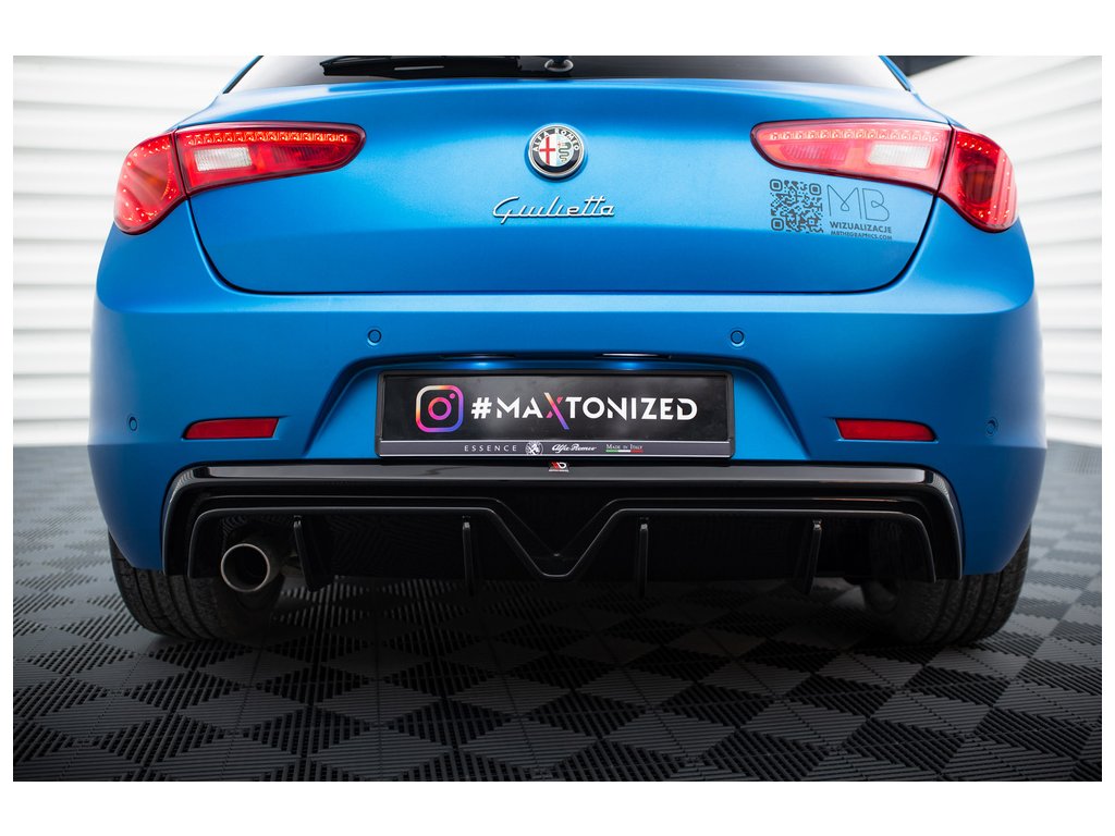 Maxton Design vložka zadního nárazníku pro vozidlo Alfa Romeo Giulietta Facelift . Povrchová úprava spoileru černý lesklý plast ABS.