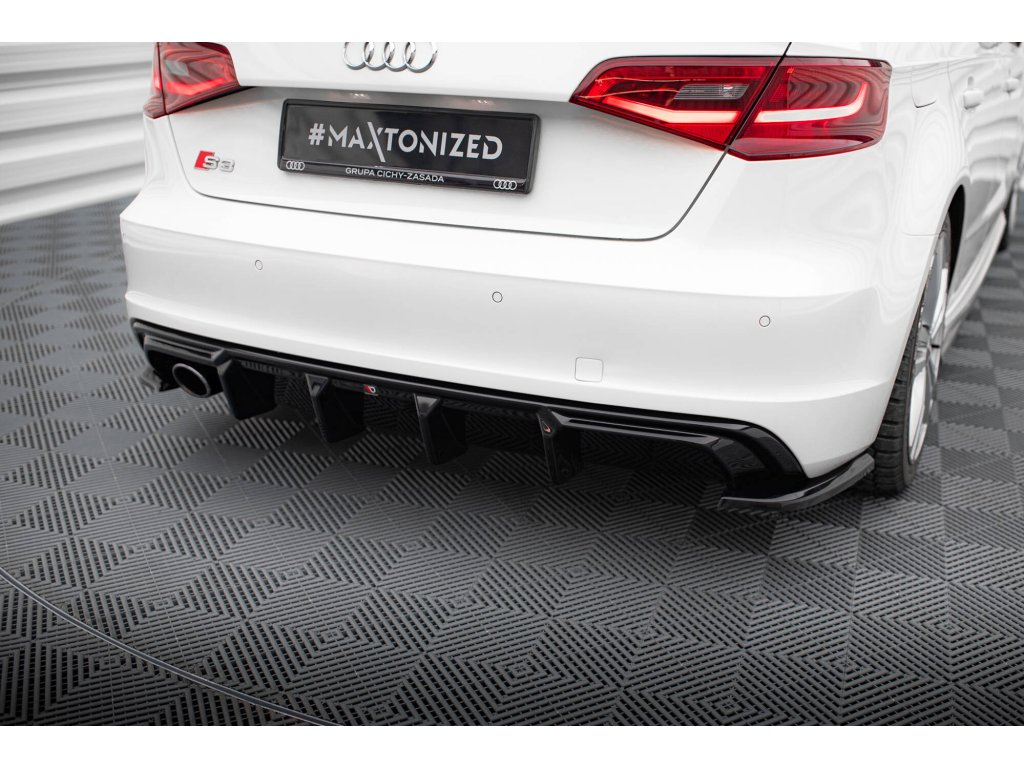 Maxton Design vložka zadního nárazníku pro vozidlo Audi A3 8V . Povrchová úprava spoileru černý lesklý plast ABS.