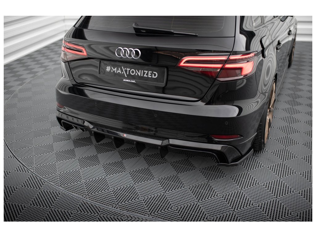 Maxton Design vložka zadního nárazníku pro vozidlo Audi A3 8V FL . Povrchová úprava spoileru černý lesklý plast ABS.