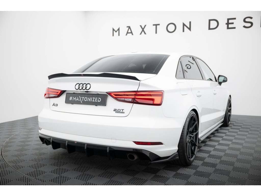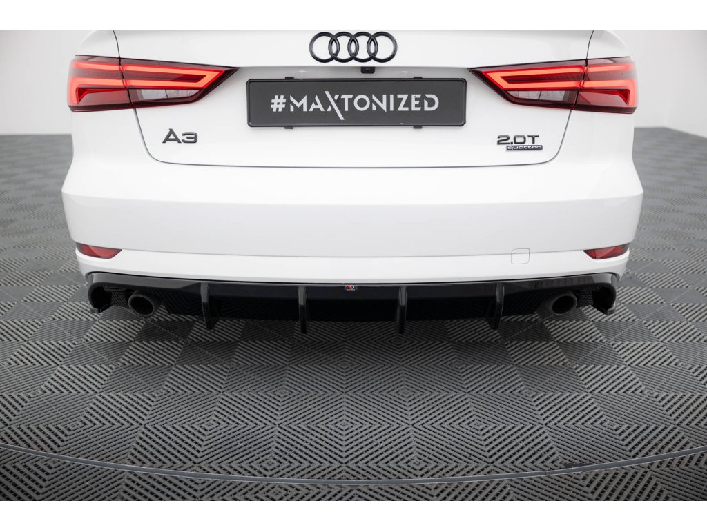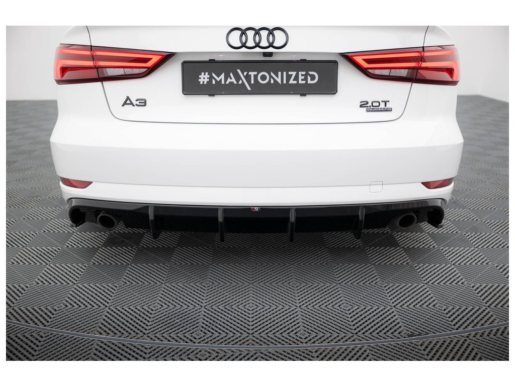 Maxton Design vložka zadního nárazníku pro Audi A3 8V FL, černý lesklý plast ABS, Sedan, verze s jednoduchou koncovkou na obou stranách