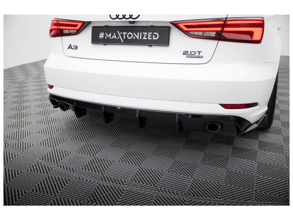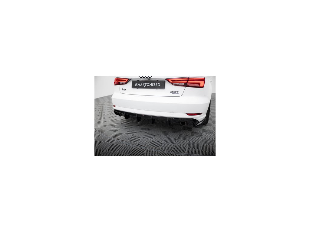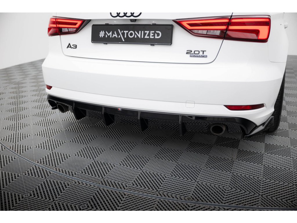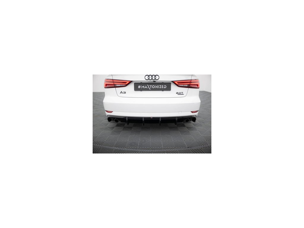 Maxton Design vložka zadního nárazníku pro vozidlo Audi A3 8V FL . Povrchová úprava spoileru černý lesklý plast ABS.