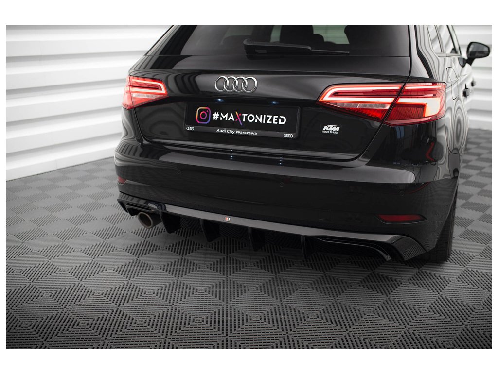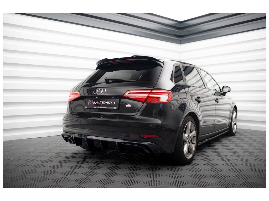 Maxton Design vložka zadního nárazníku pro vozidlo Audi A3 8V FL . Povrchová úprava spoileru černý lesklý plast ABS.