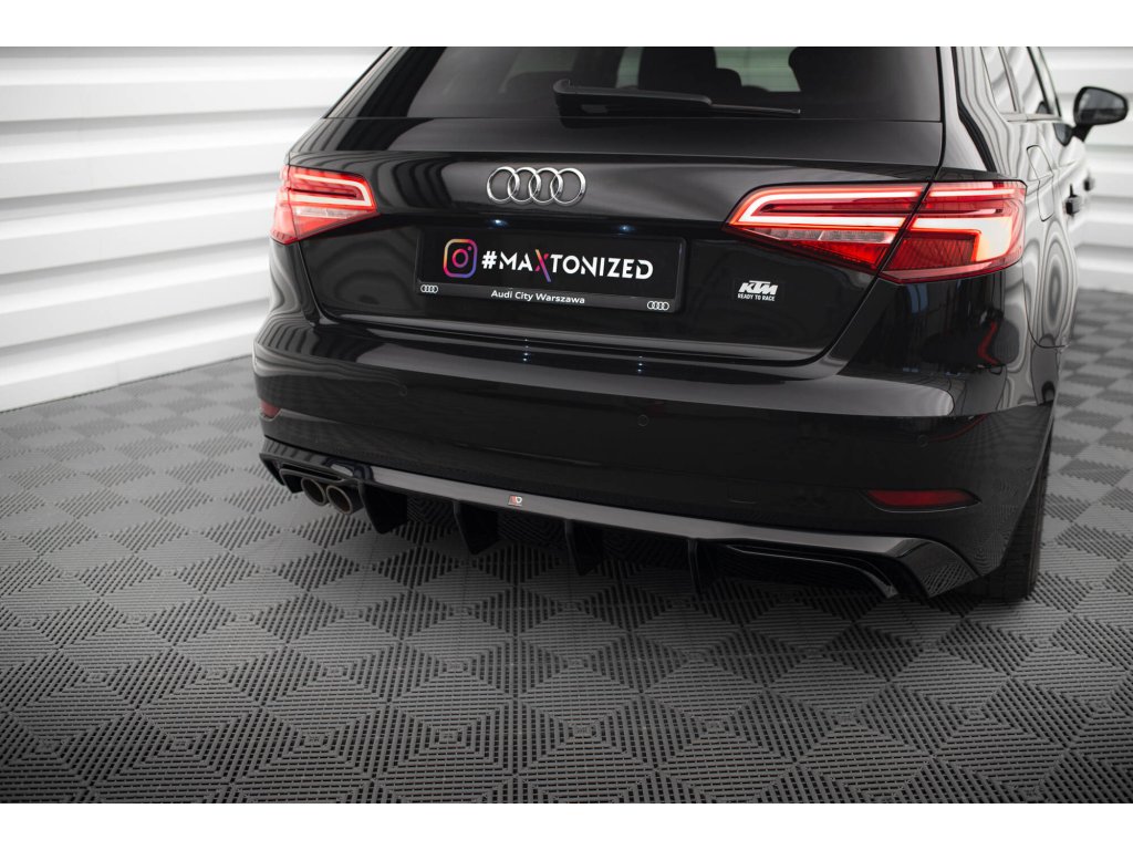 Maxton Design vložka zadního nárazníku pro vozidlo Audi A3 8V FL . Povrchová úprava spoileru černý lesklý plast ABS.