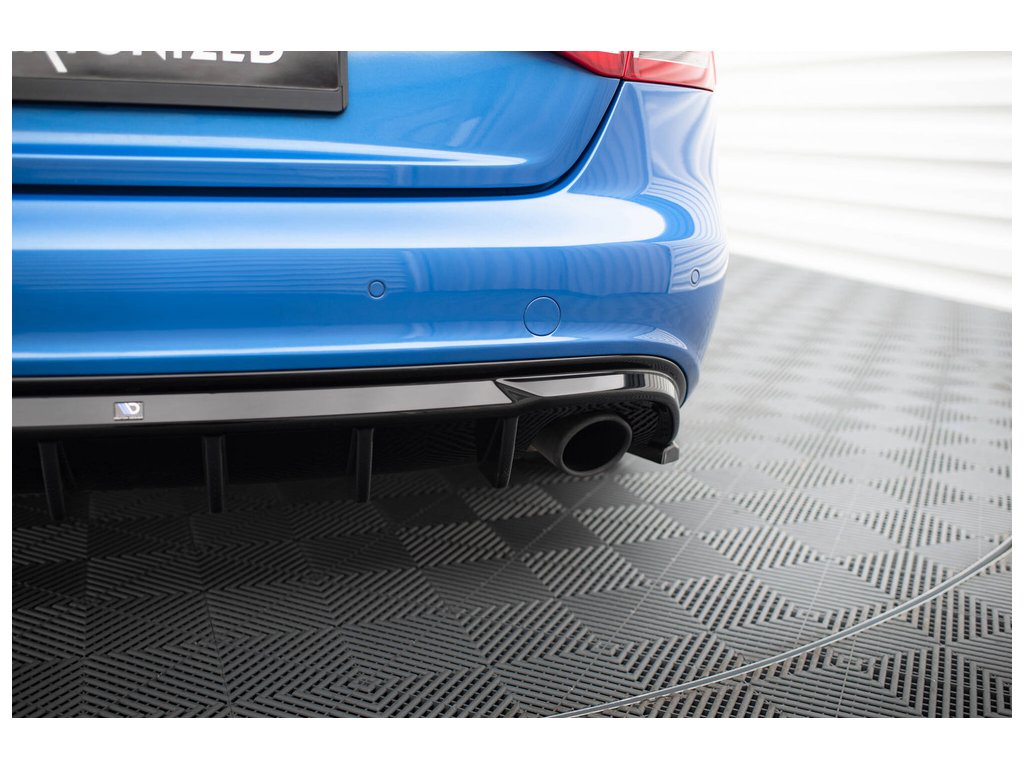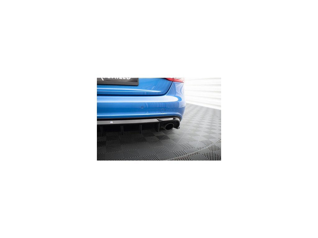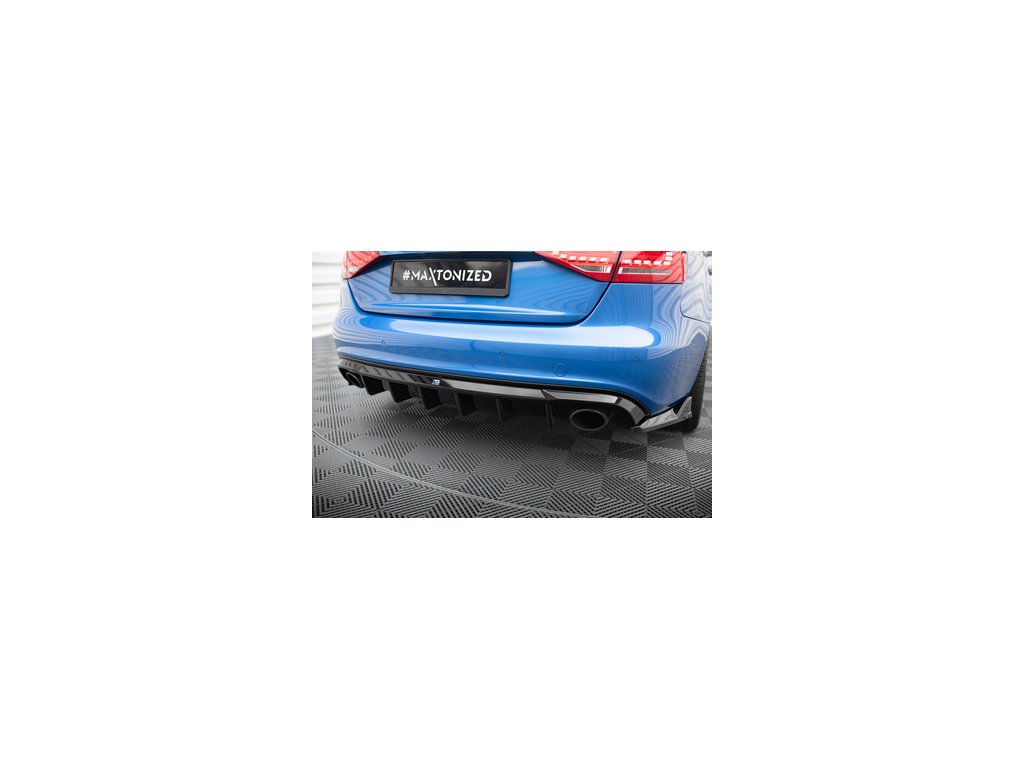 Maxton Design vložka zadního nárazníku pro Audi A4 B8, černý lesklý plast ABS, S-Line Sedan / S-Line Avant, verze s jednoduchou koncovkou na obou stranách