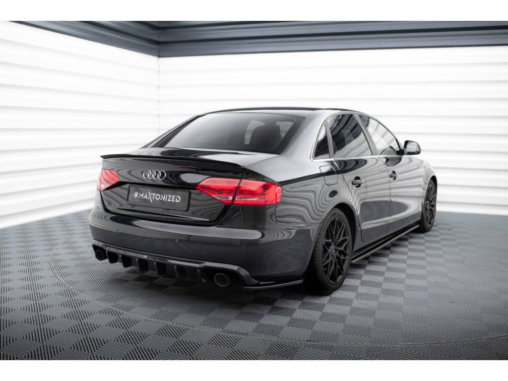 Maxton Design vložka zadního nárazníku pro vozidlo Audi A4 B8 . Povrchová úprava spoileru černý lesklý plast ABS.