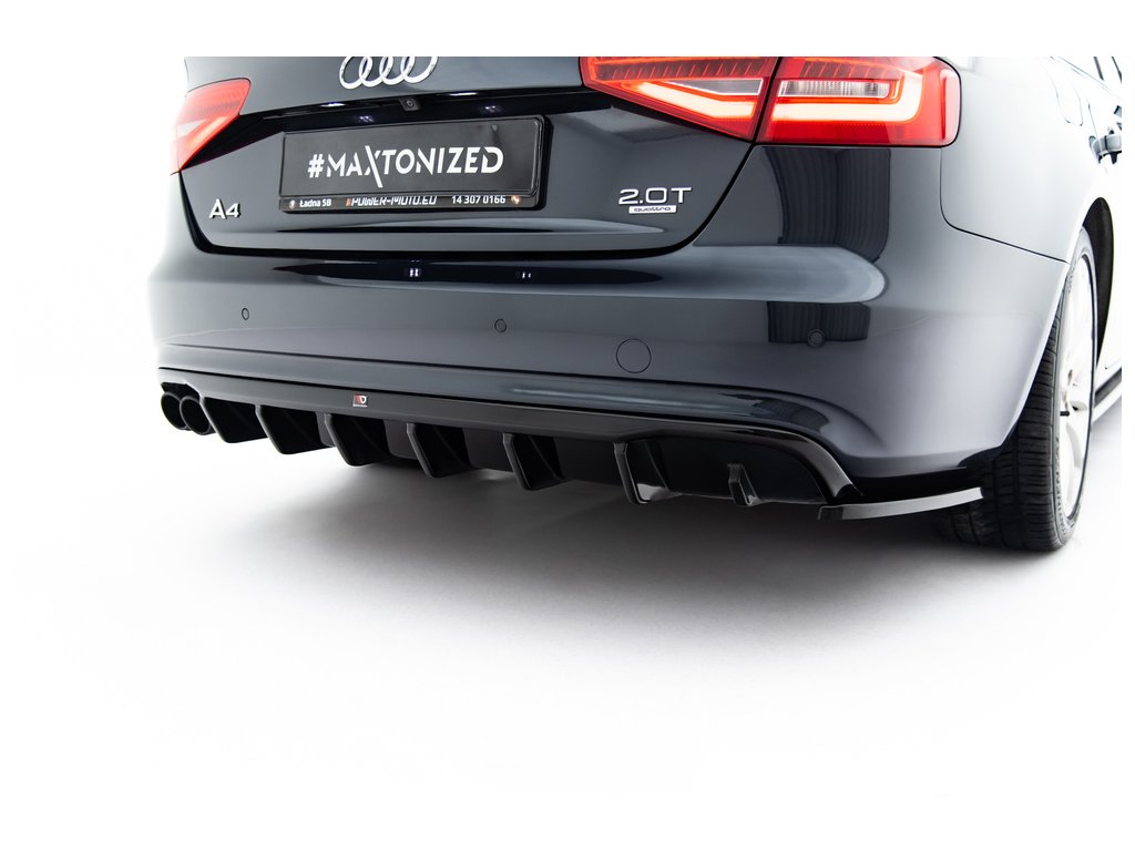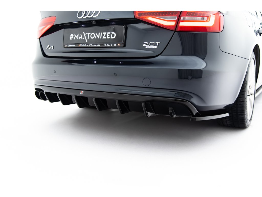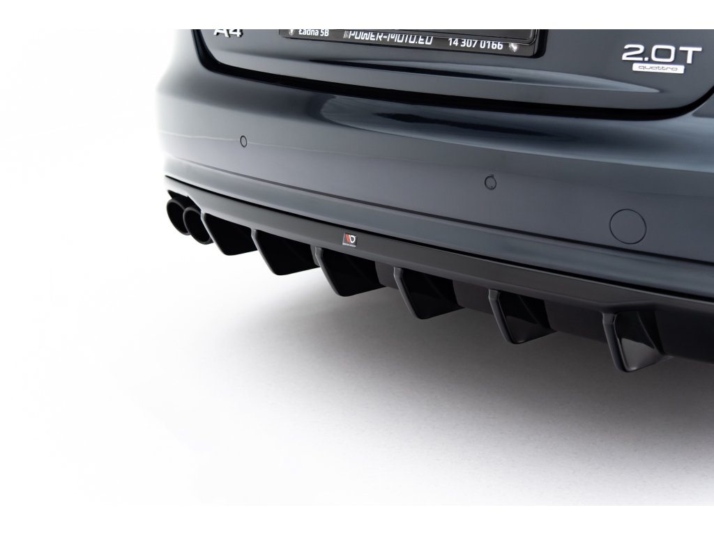 Maxton Design vložka zadního nárazníku pro Audi A4 B8 FL, černý lesklý plast ABS, Sedan/Avant, verze s dvojitou koncovkou na jedné straně