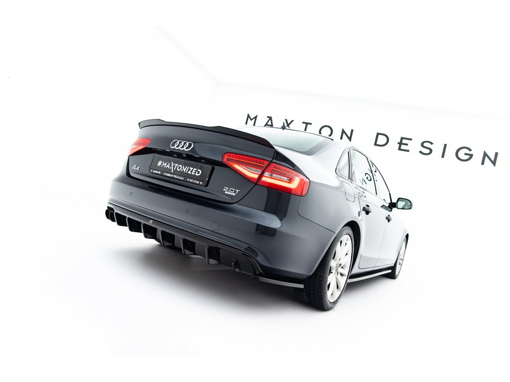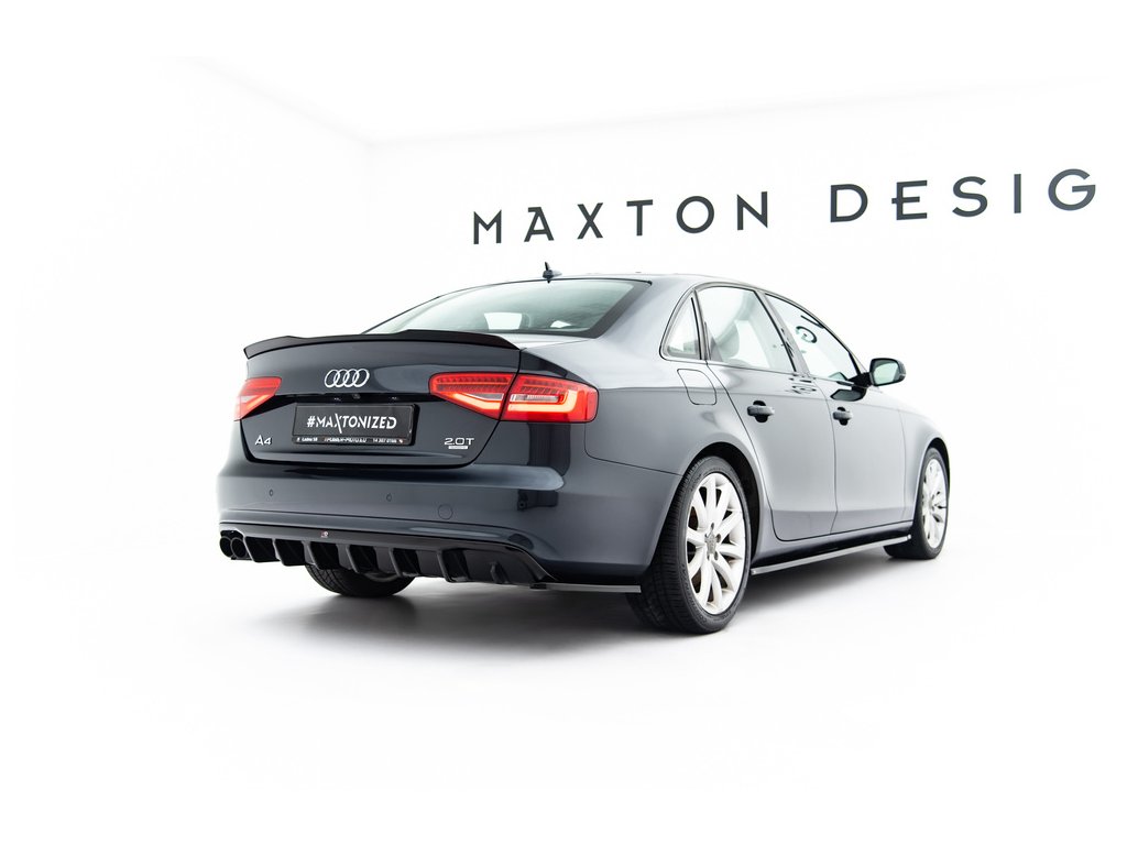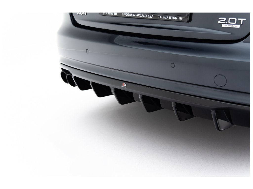 Maxton Design vložka zadního nárazníku pro vozidlo Audi A4 B8 FL . Povrchová úprava spoileru černý lesklý plast ABS.