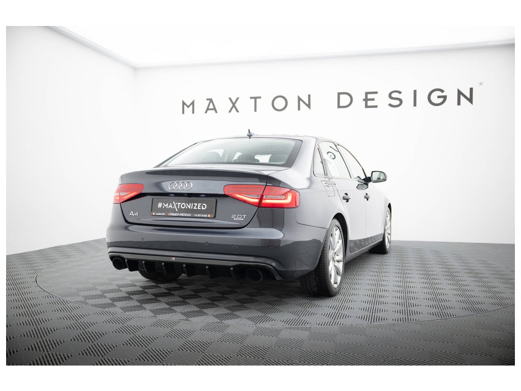 Maxton Design vložka zadního nárazníku pro Audi A4 B8 FL, černý lesklý plast ABS, Sedan / Avant, verze s jednoduchými výfuky na obou stranách