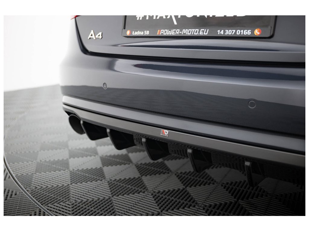 Maxton Design vložka zadního nárazníku pro vozidlo Audi A4 B8 FL . Povrchová úprava spoileru černý lesklý plast ABS.