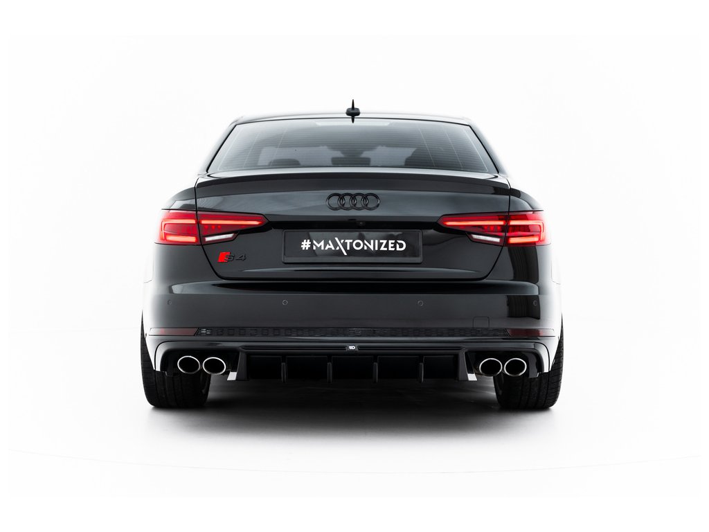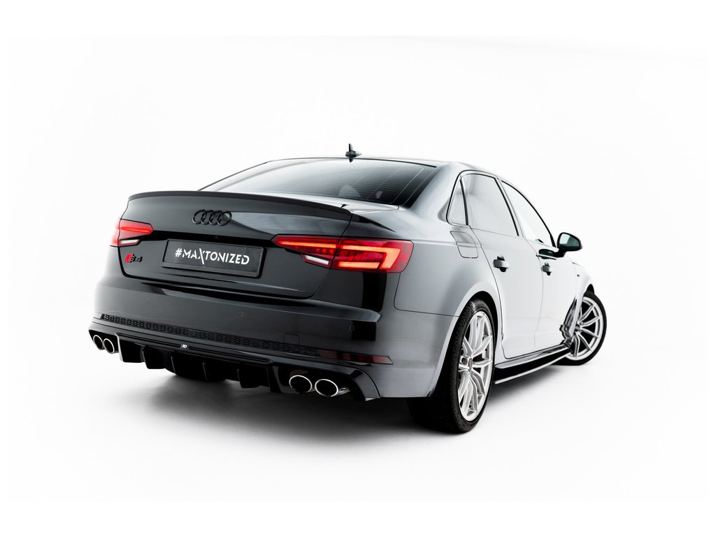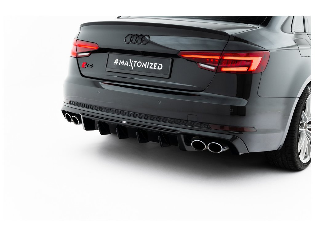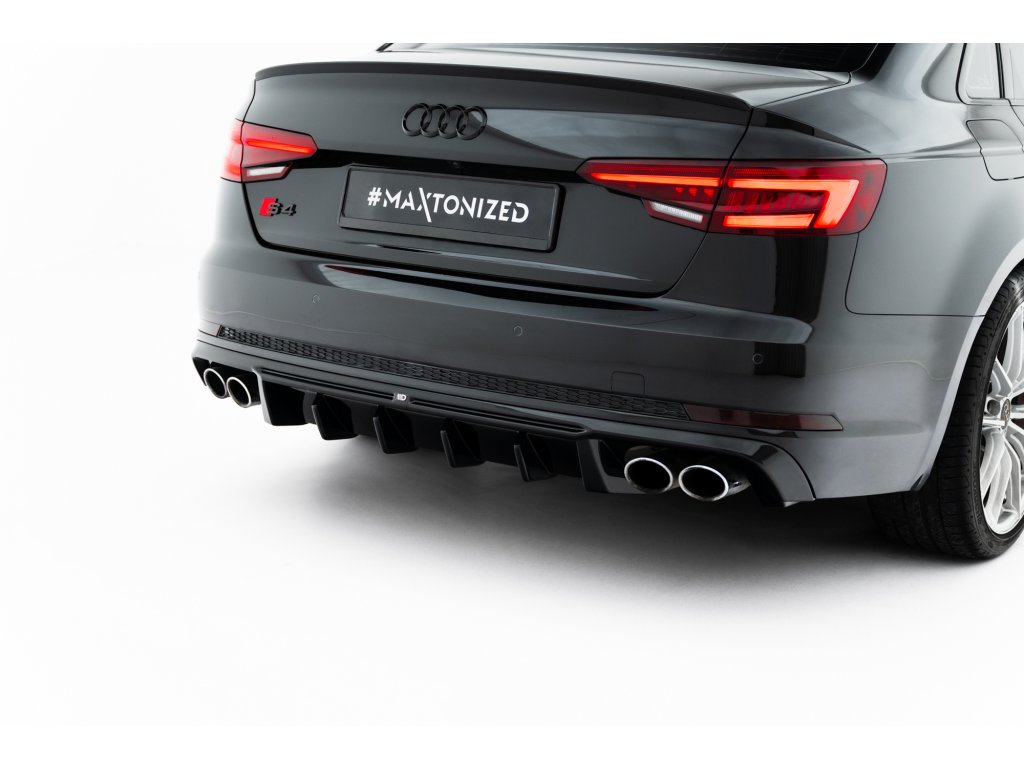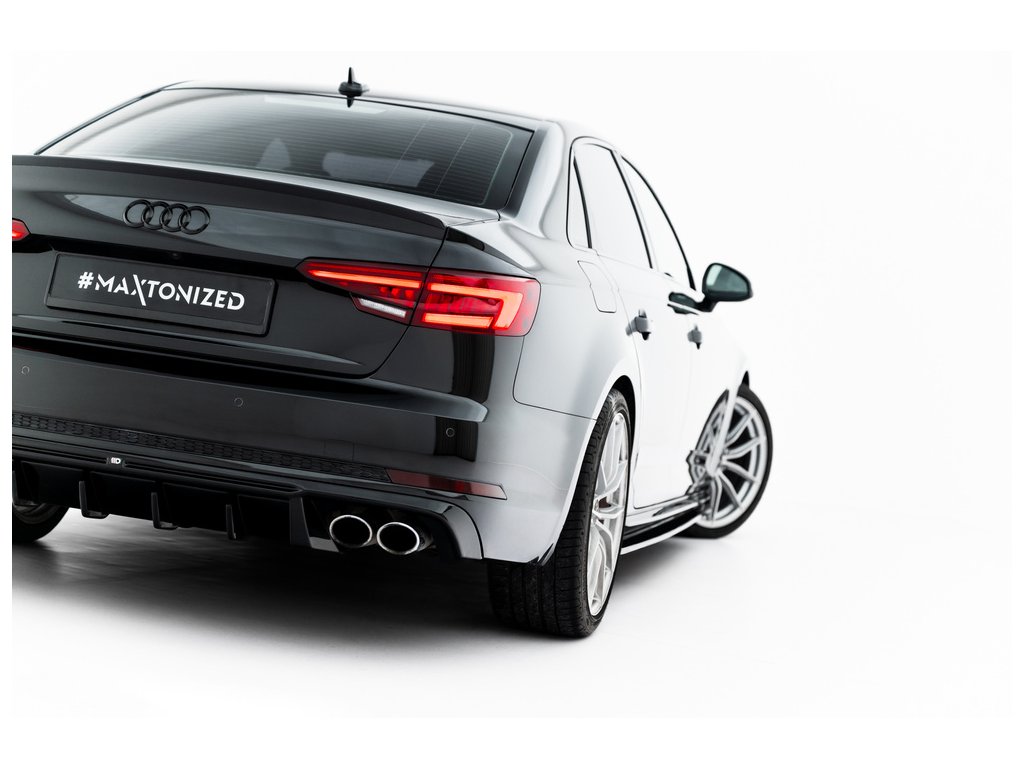 Maxton Design vložka zadního nárazníku pro vozidlo Audi A4 B9 . Povrchová úprava spoileru černý lesklý plast ABS.