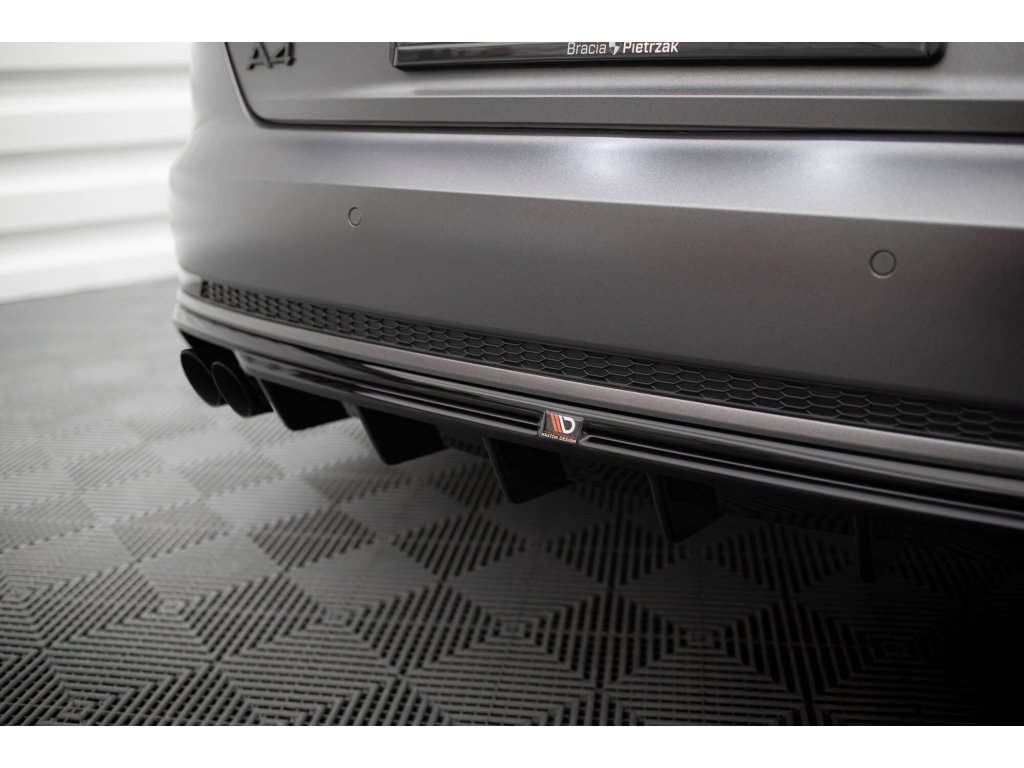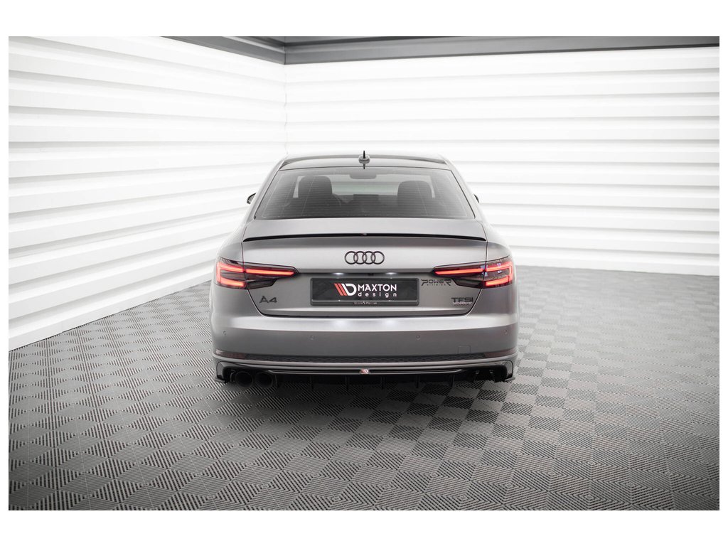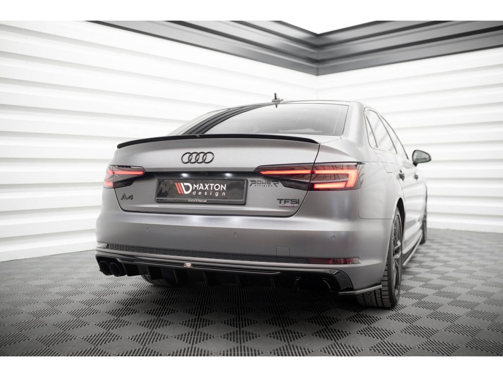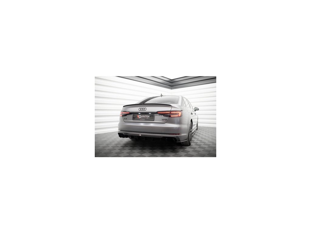 Maxton Design vložka zadního nárazníku pro vozidlo Audi A4 B9 . Povrchová úprava spoileru černý lesklý plast ABS.