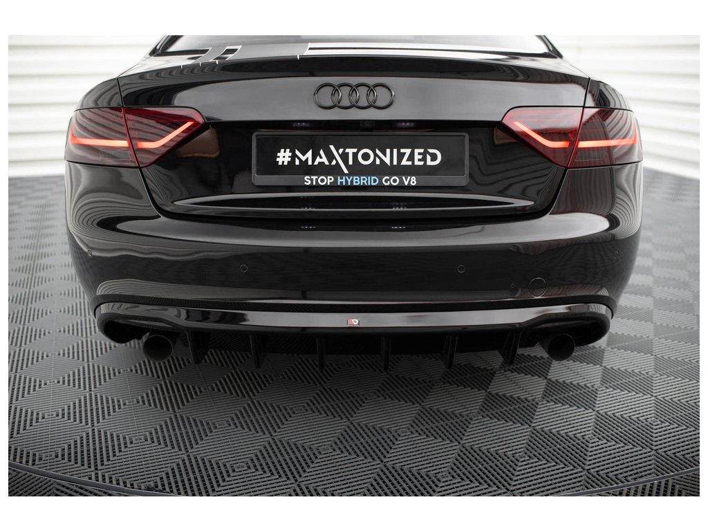 Maxton Design vložka zadního nárazníku pro Audi A5 8T, černý lesklý plast ABS, Coupe S-line/Cabrio S-line, s jednoduchou koncovkou na obou stranách