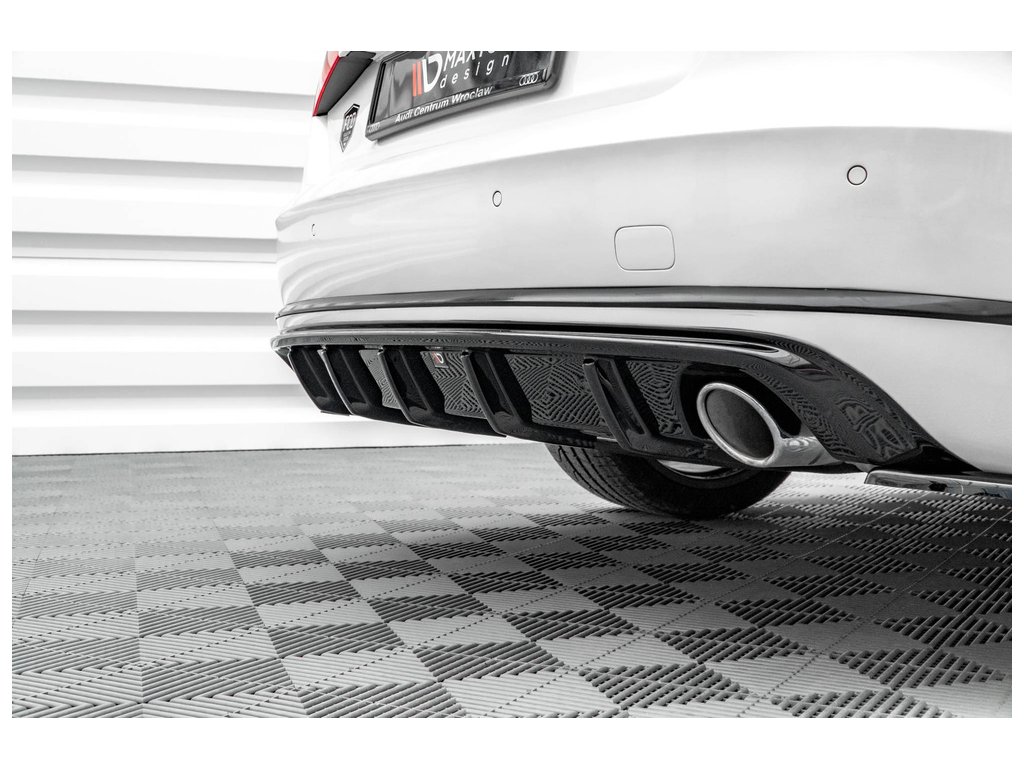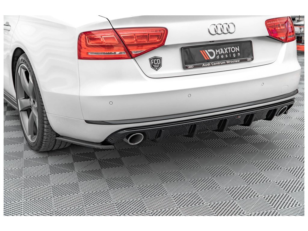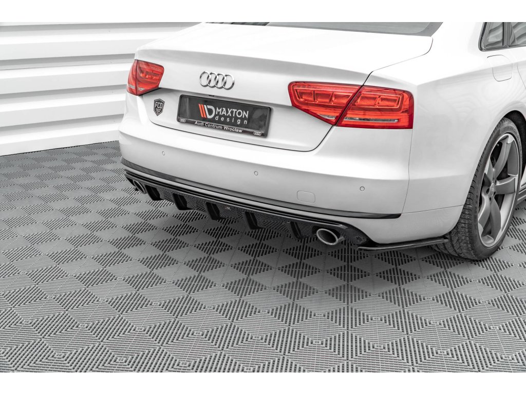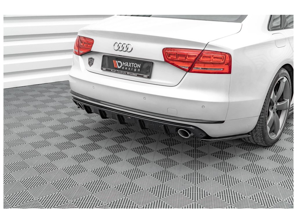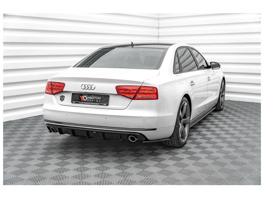 Maxton Design vložka zadního nárazníku pro vozidlo Audi A8 D4 . Povrchová úprava spoileru černý lesklý plast ABS.