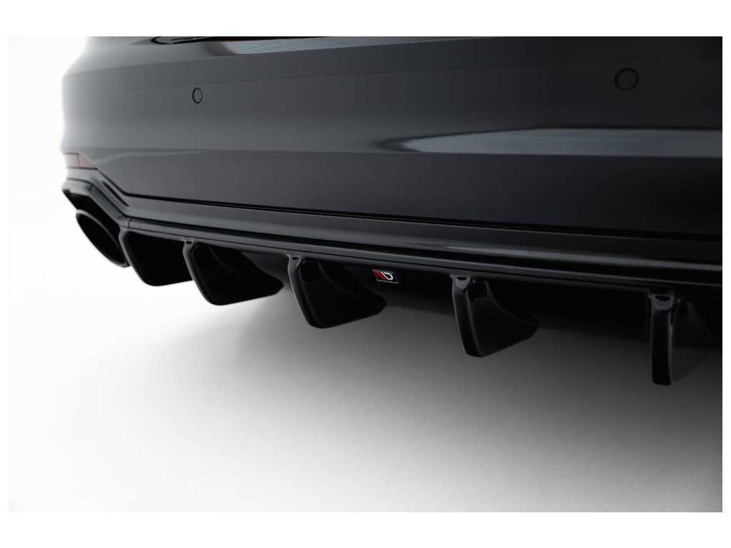 Difuzor zadního nárazníku Audi RS5 F5 Coupe / Sportback, povrchová úprava černý lesklý plast ABS.