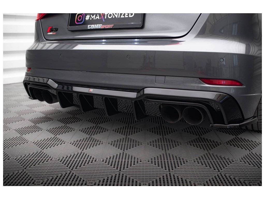 Maxton Design vložka zadního nárazníku pro vozidlo Audi S3 8V FL . Povrchová úprava spoileru černý lesklý plast ABS.