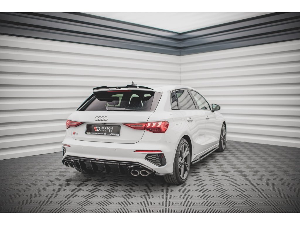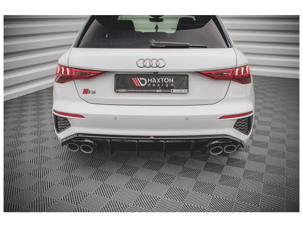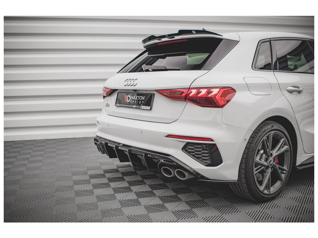 Maxton Design vložka zadního nárazníku pro vozidlo Audi S3 8Y . Povrchová úprava spoileru černý lesklý plast ABS.