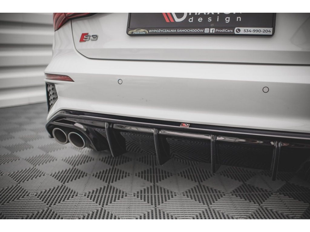 Difuzor zadního nárazníku Audi S3 8Y, povrchová úprava černý lesklý plast ABS.