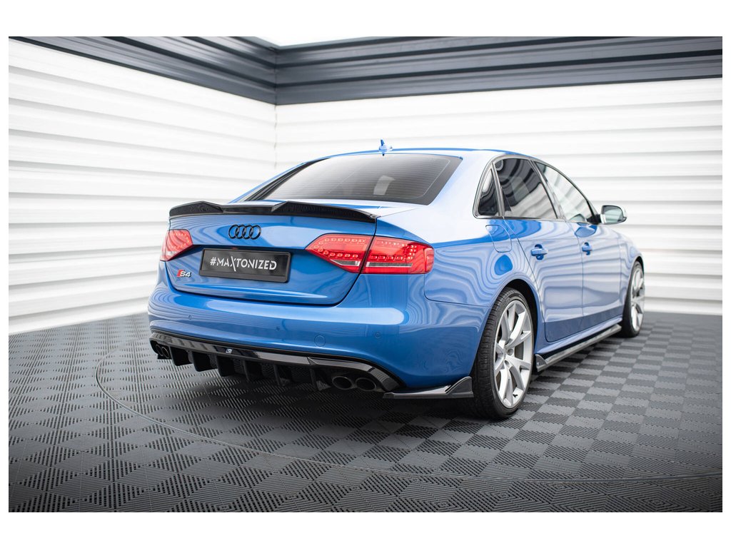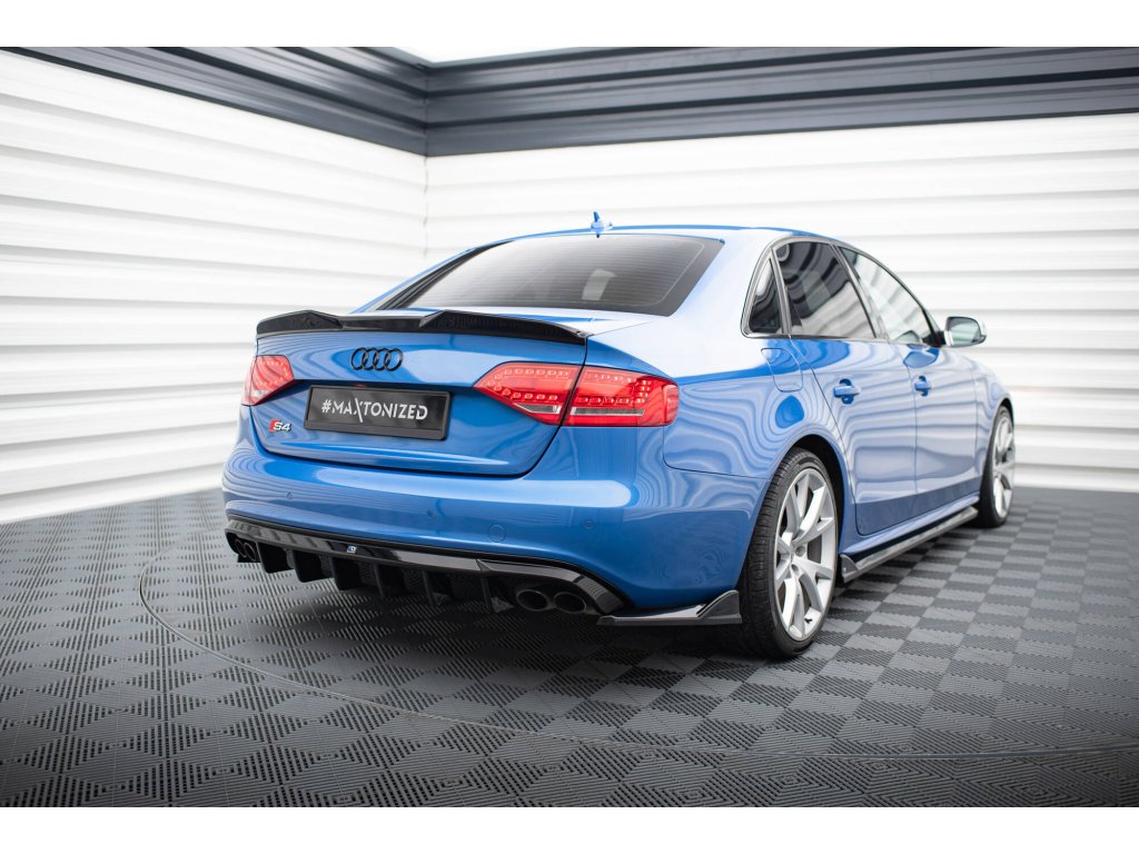Maxton Design vložka zadního nárazníku pro vozidlo Audi S4 B8 . Povrchová úprava spoileru černý lesklý plast ABS.
