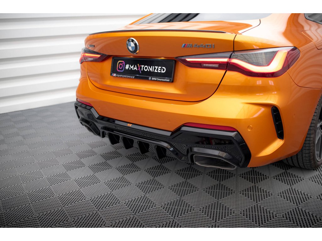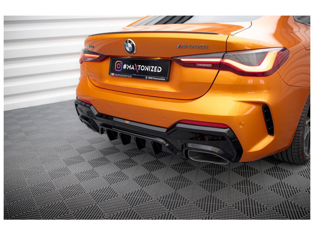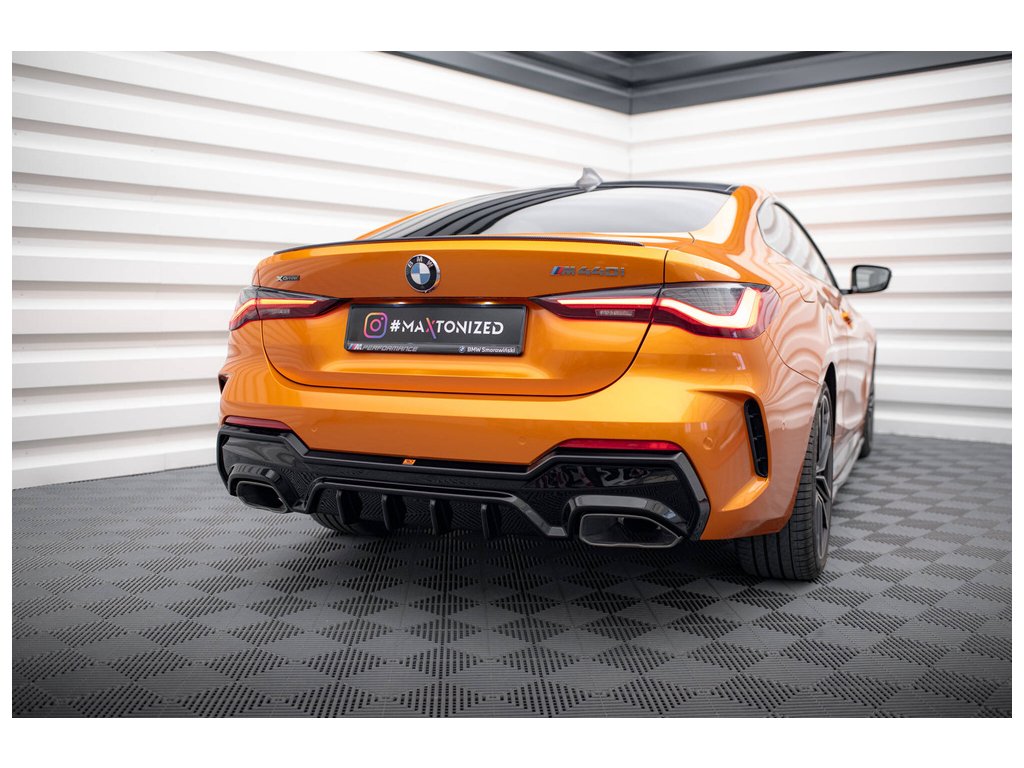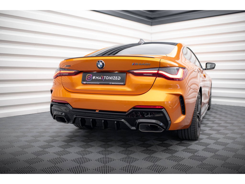 Maxton Design vložka zadního nárazníku pro vozidlo BMW řada 4 G22, G22 Facelift, G23, G23 Facelift . Povrchová úprava spoileru černý lesklý plast ABS.