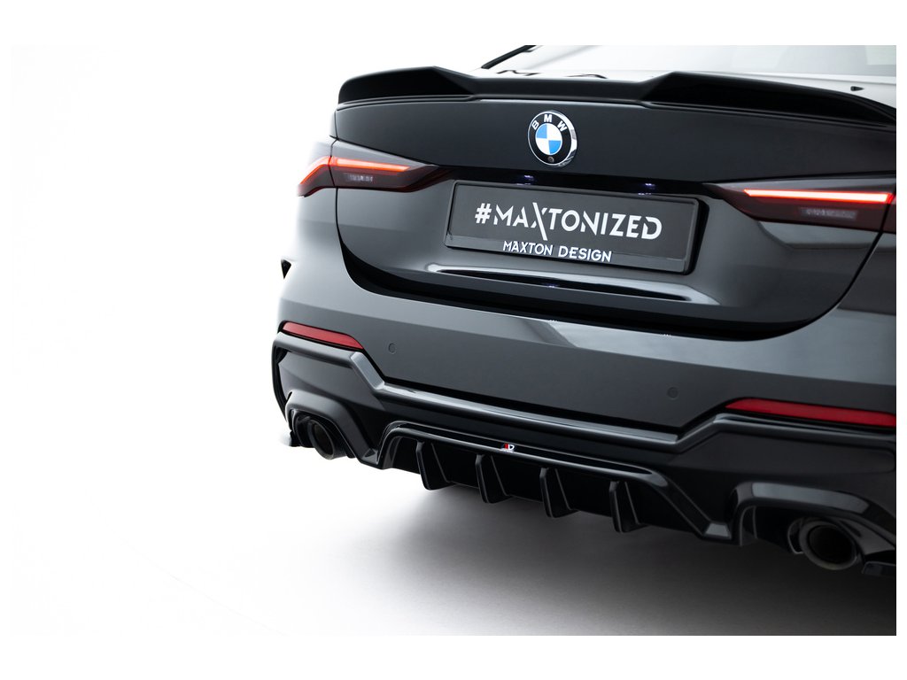 Maxton Design vložka zadního nárazníku pro vozidlo BMW řada 4 G22/M-Pack, G22/M-Pack Facelift, G23/M-Pack, G23/M-Pack Facelift . Povrchová úprava spoileru černý lesklý plast ABS.