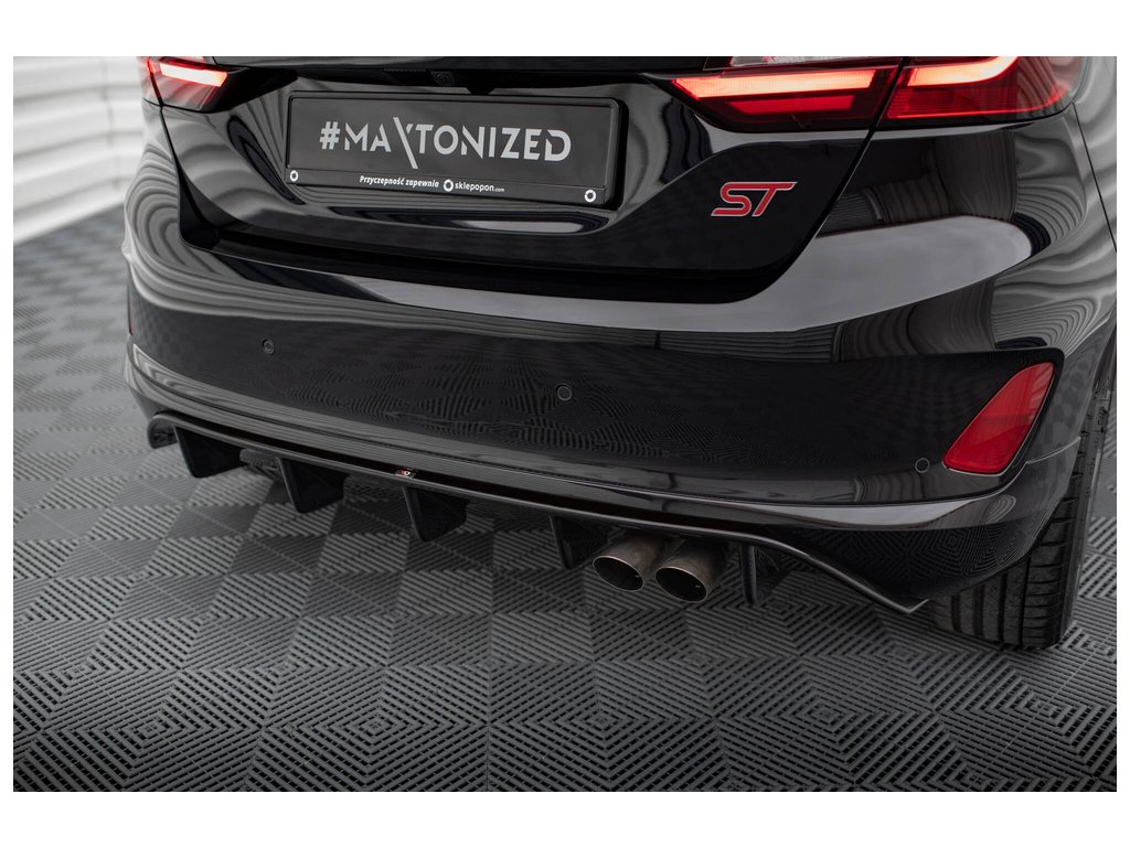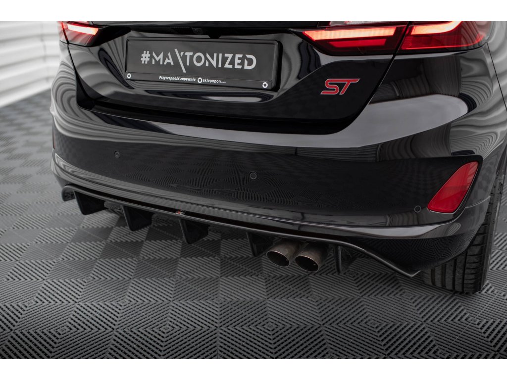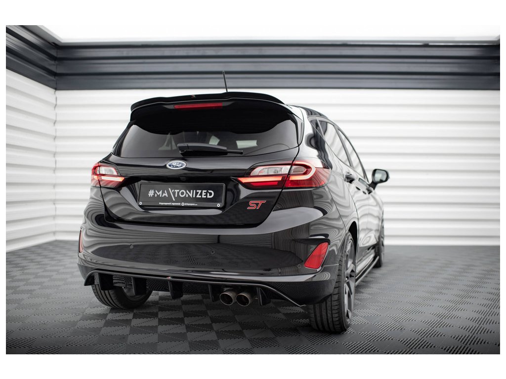 Maxton Design vložka zadního nárazníku pro vozidlo Ford Fiesta ST Mk8 . Povrchová úprava spoileru černý lesklý plast ABS.