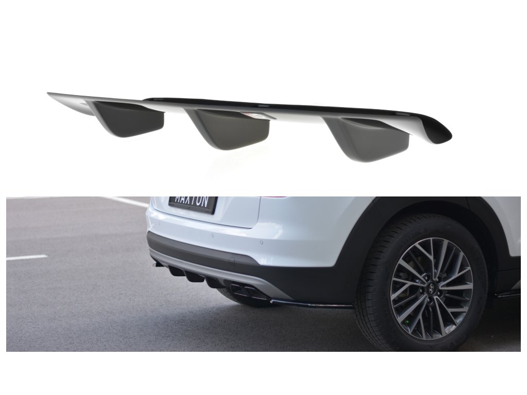 Maxton Design vložka zadního nárazníku pro vozidlo Hyundai Tucson Mk3 Facelift . Povrchová úprava spoileru carbon-Look.