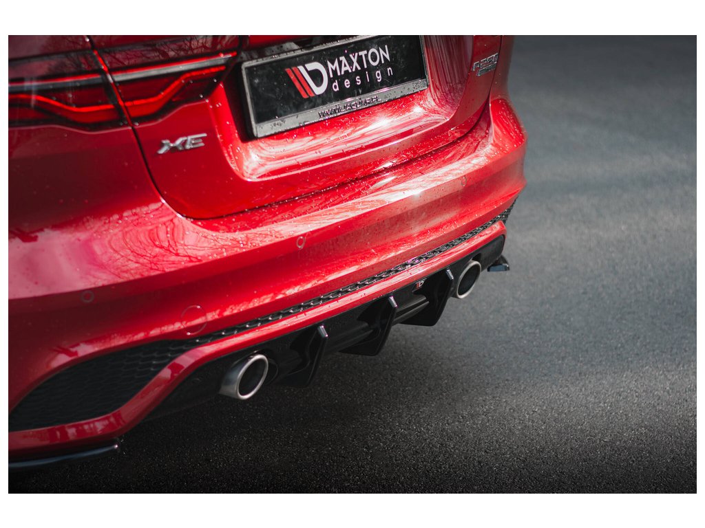 Maxton Design vložka zadního nárazníku pro vozidlo Jaguar XE Mk1 Facelift X760 R-Dynamic . Povrchová úprava spoileru černý lesklý plast ABS.