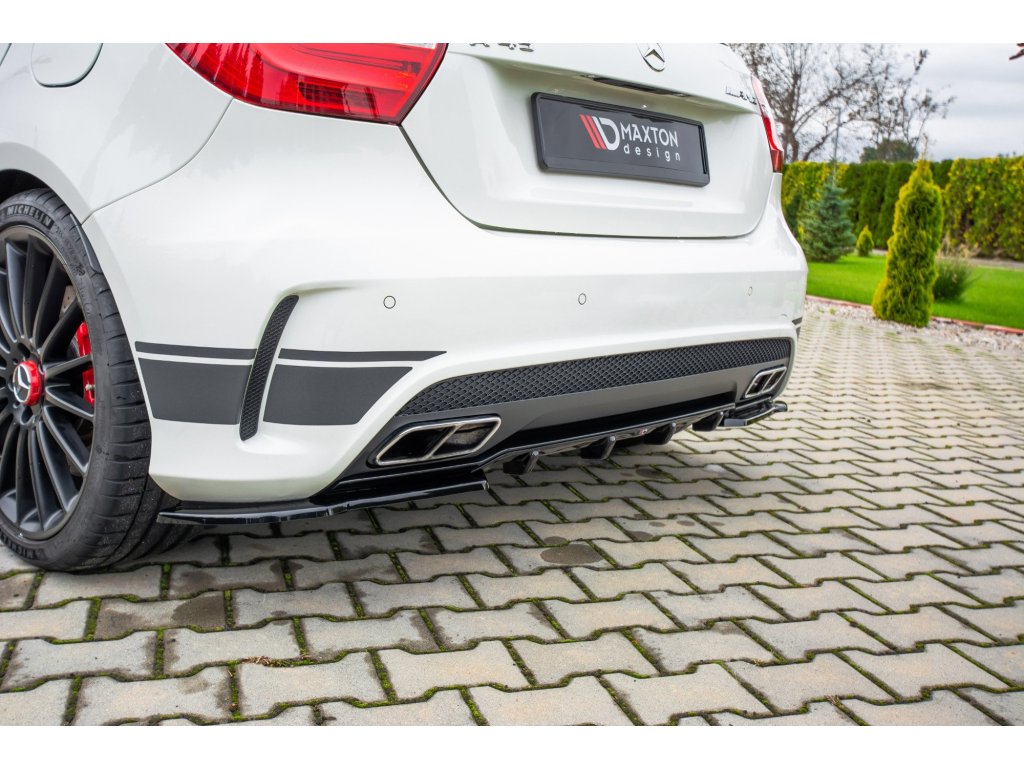 Maxton Design vložka zadního nárazníku pro vozidlo Mercedes třída A W176/AMG . Povrchová úprava spoileru carbon-Look.