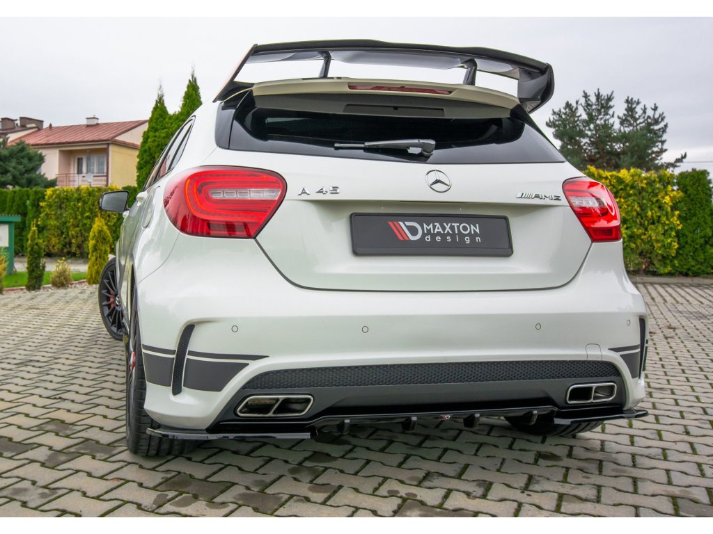Maxton Design vložka zadního nárazníku pro vozidlo Mercedes třída A W176/AMG . Povrchová úprava spoileru černý lesklý plast ABS.