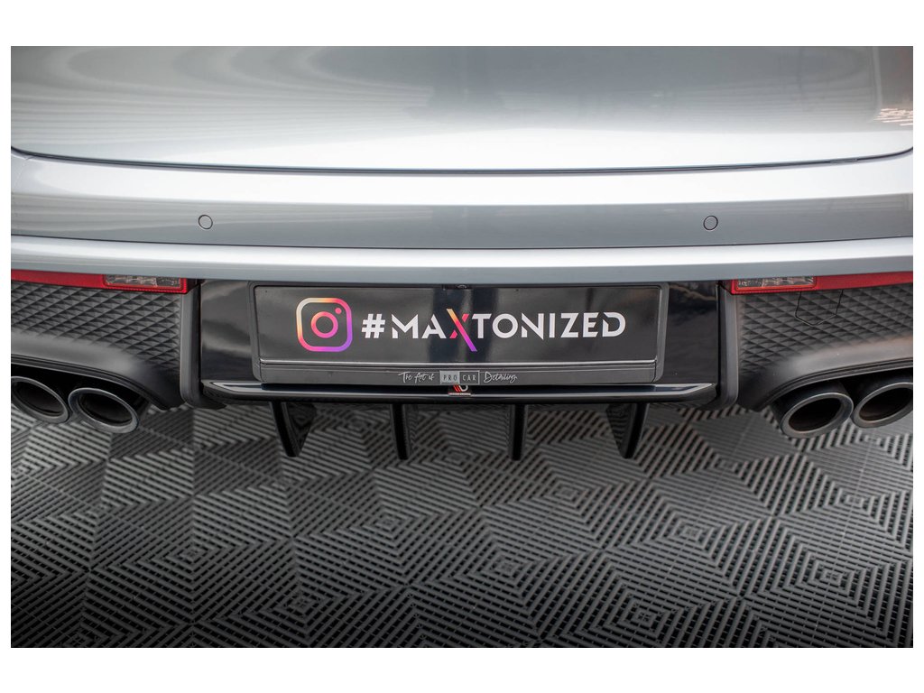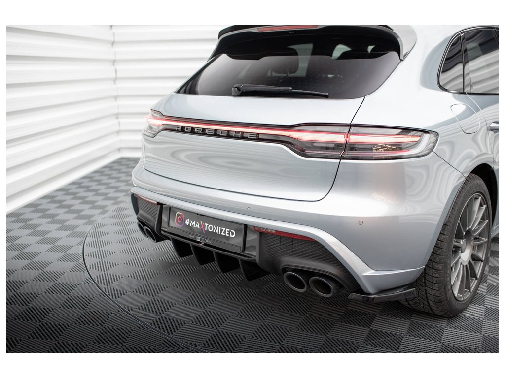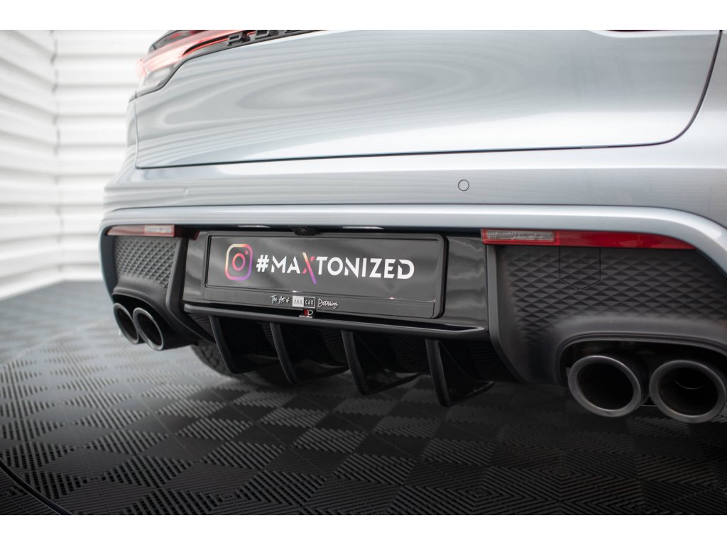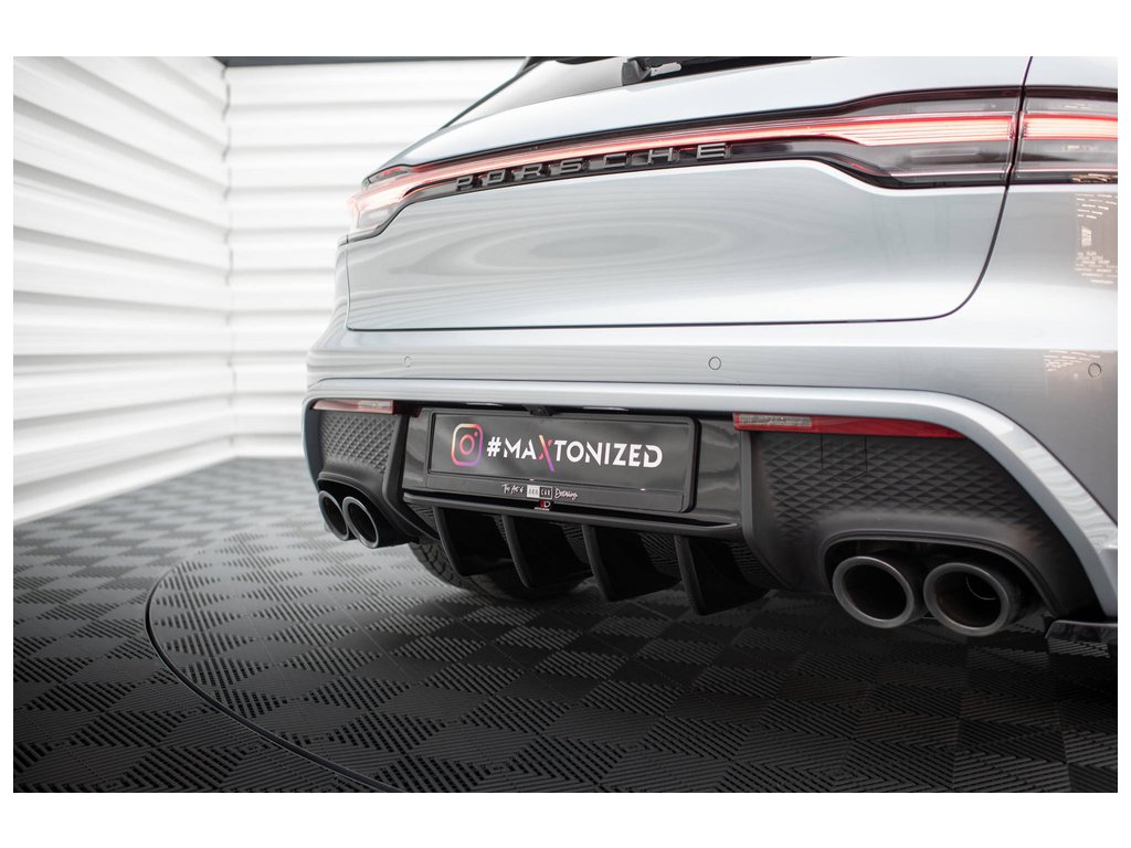 Maxton Design vložka zadního nárazníku pro vozidlo Porsche Macan Mk1 Facelift 2 . Povrchová úprava spoileru černý lesklý plast ABS.