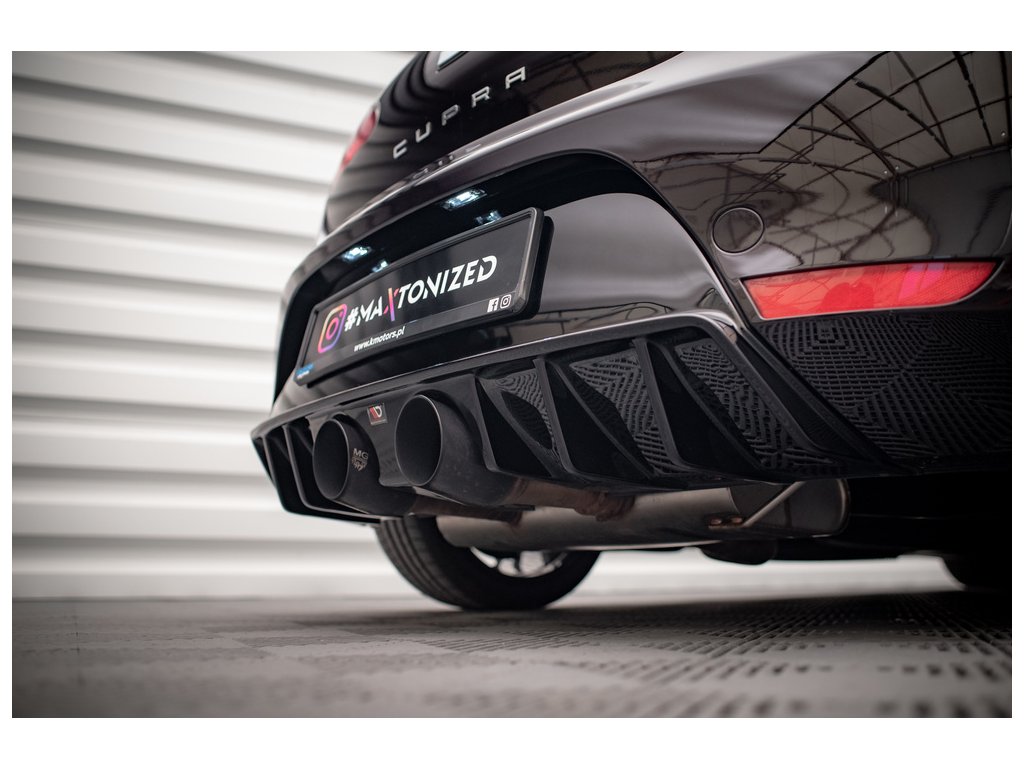 Maxton Design vložka zadního nárazníku pro vozidlo Seat Leon Cupra Mk2 . Povrchová úprava spoileru černý lesklý plast ABS.