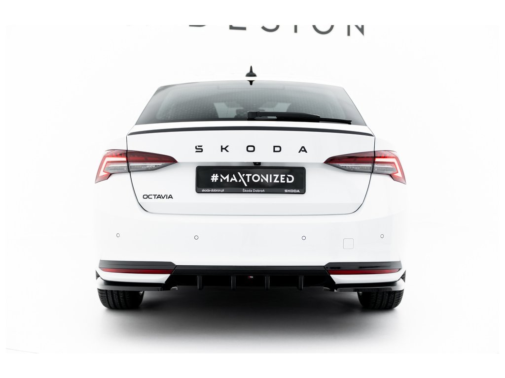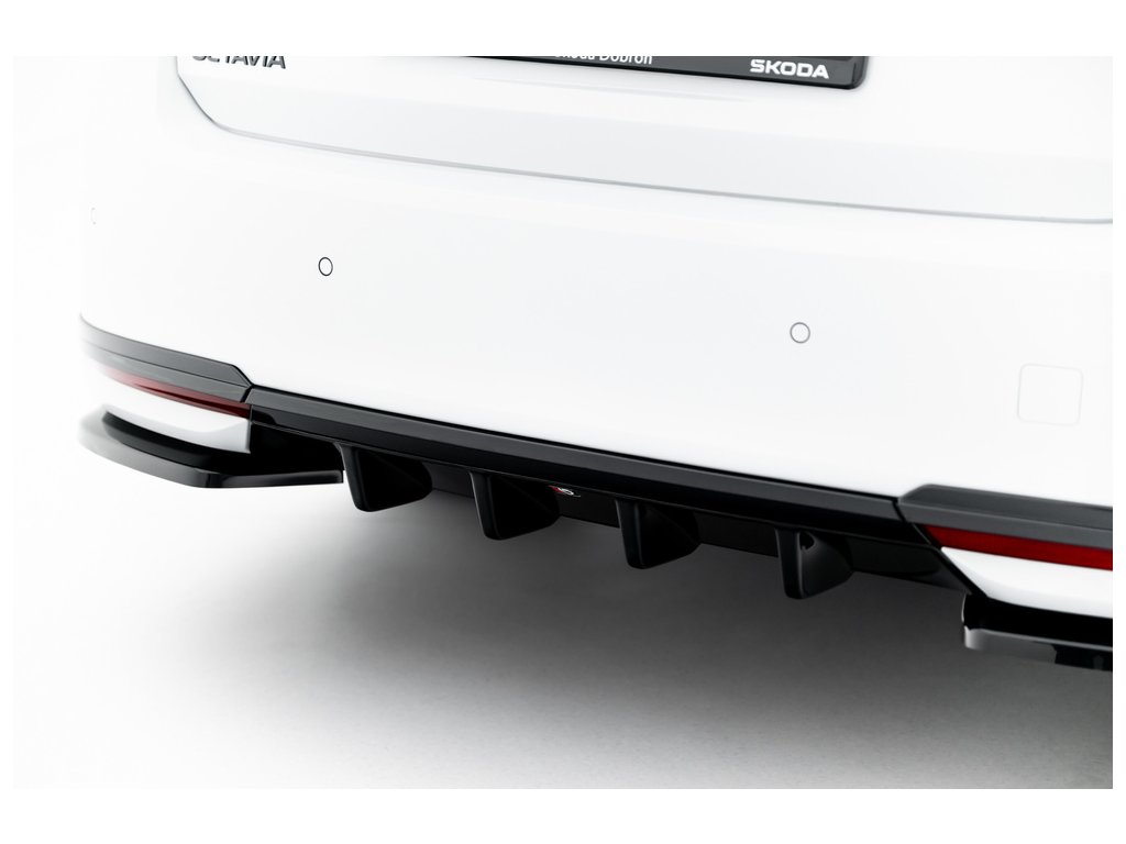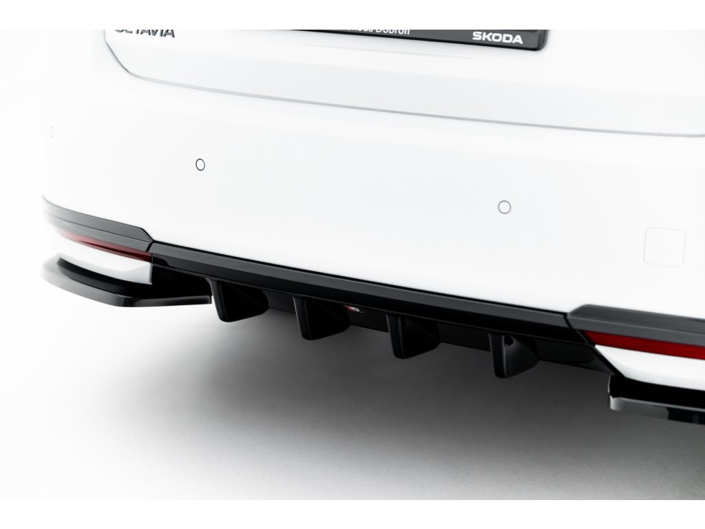 Maxton Design vložka zadního nárazníku pro vozidlo Škoda Octavia Mk4 Facelift . Povrchová úprava spoileru černý lesklý plast ABS.